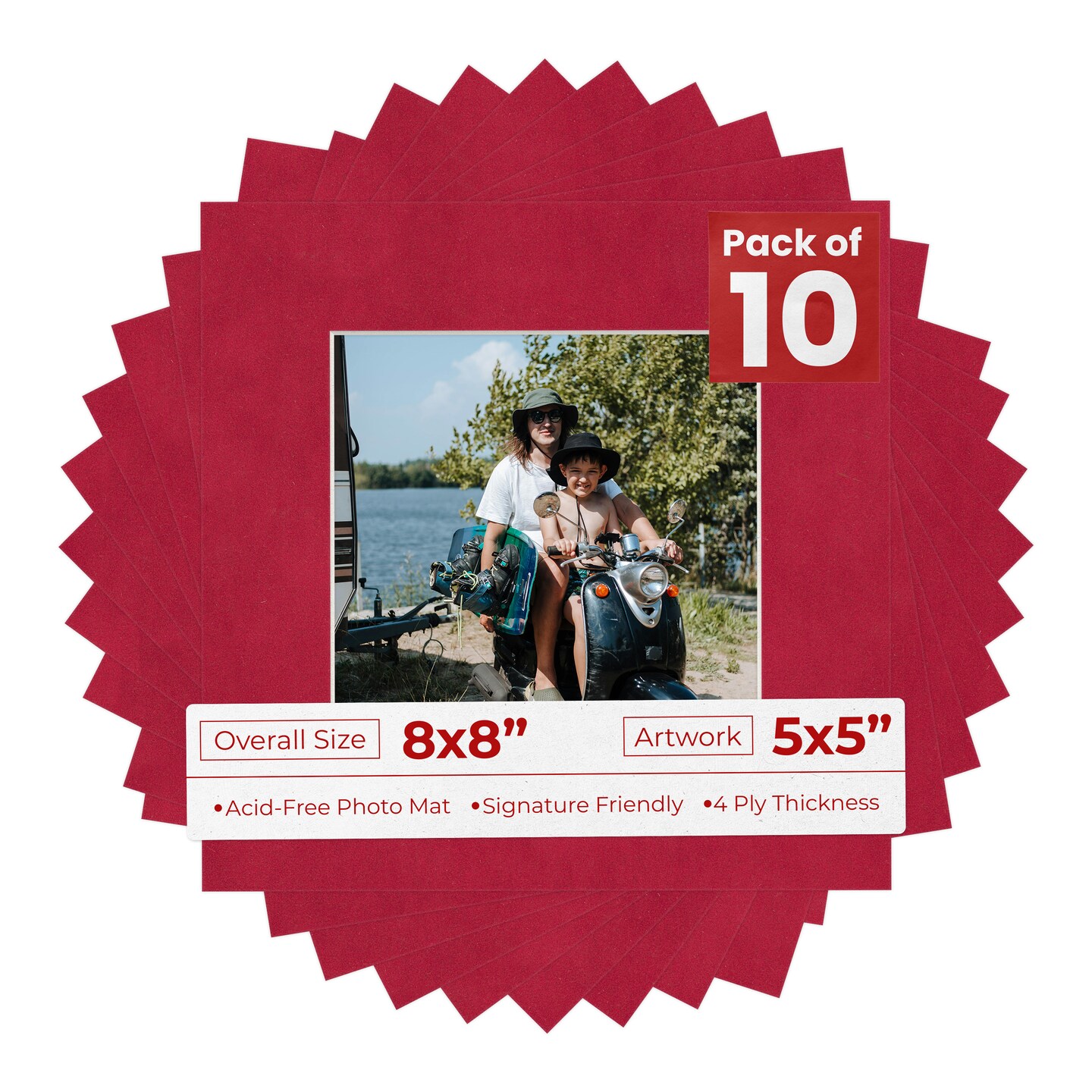 Red Suede Mat Board for 8x8 Frames - Fits 5x5 Photos
