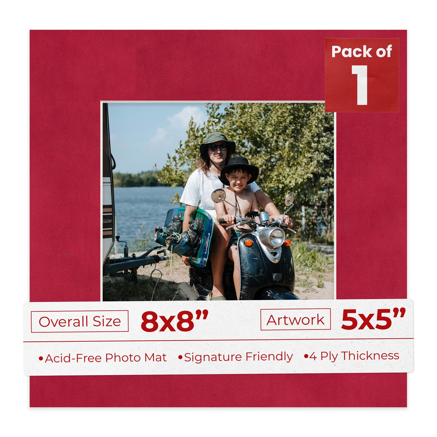 Red Suede Mat Board for 8x8 Frames - Fits 5x5 Photos