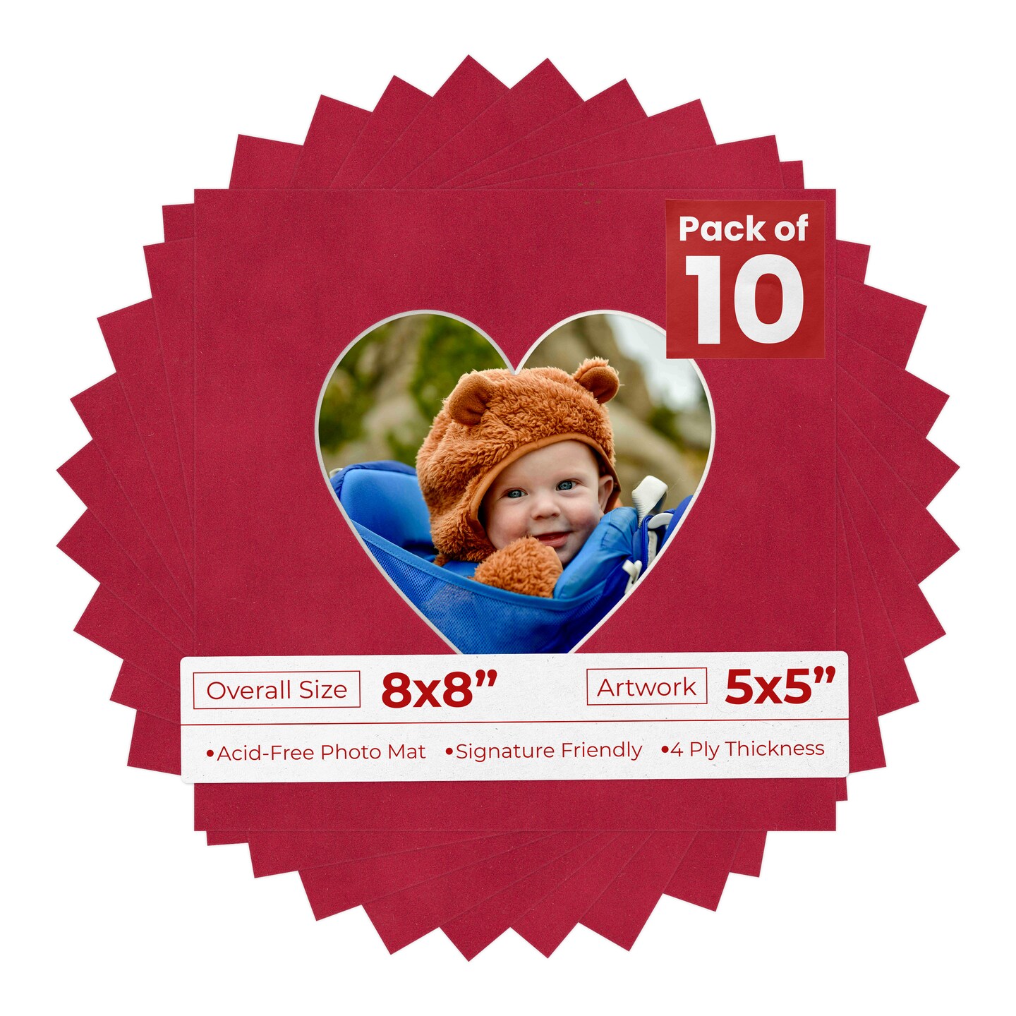 Red Suede Mat Board for 8x8 Frames - Heart Opening for 5x5 Photos