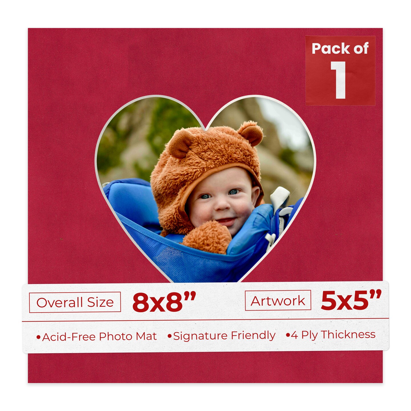 Red Suede Mat Board for 8x8 Frames - Heart Opening for 5x5 Photos