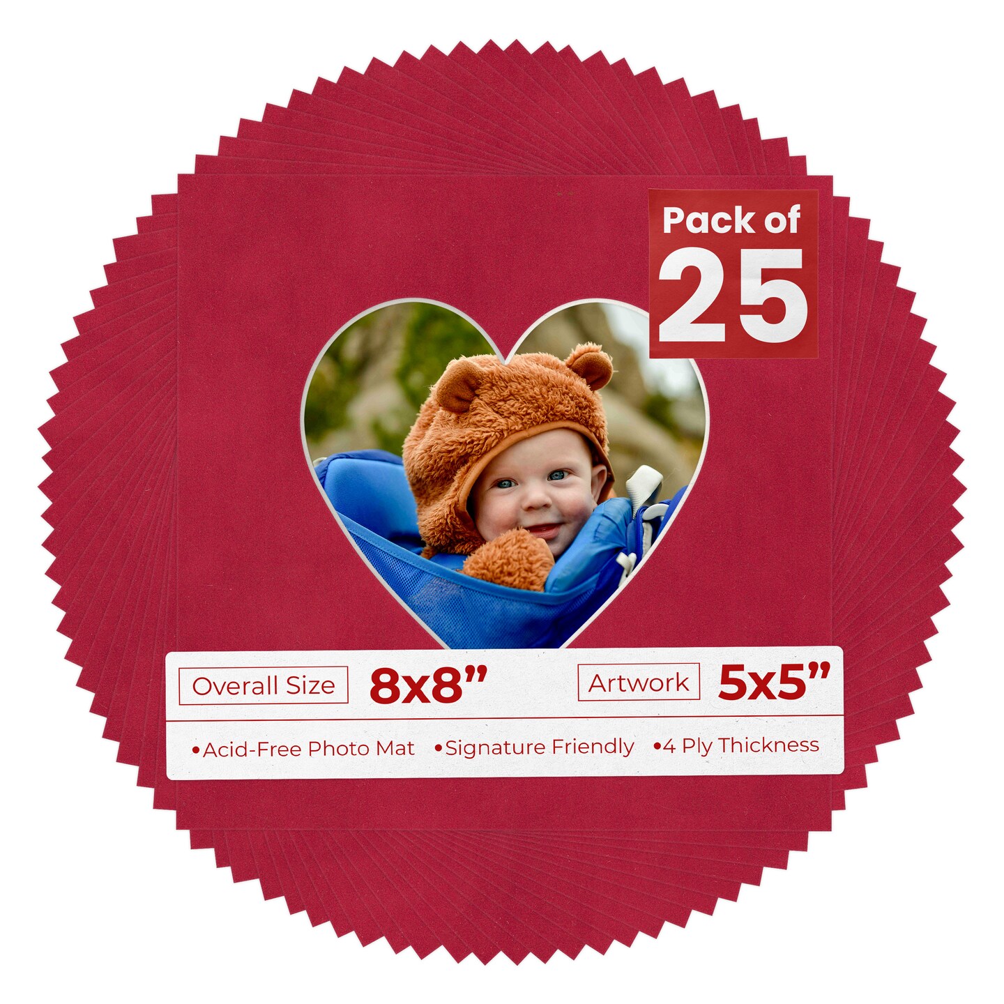 Red Suede Mat Board for 8x8 Frames - Heart Opening for 5x5 Photos