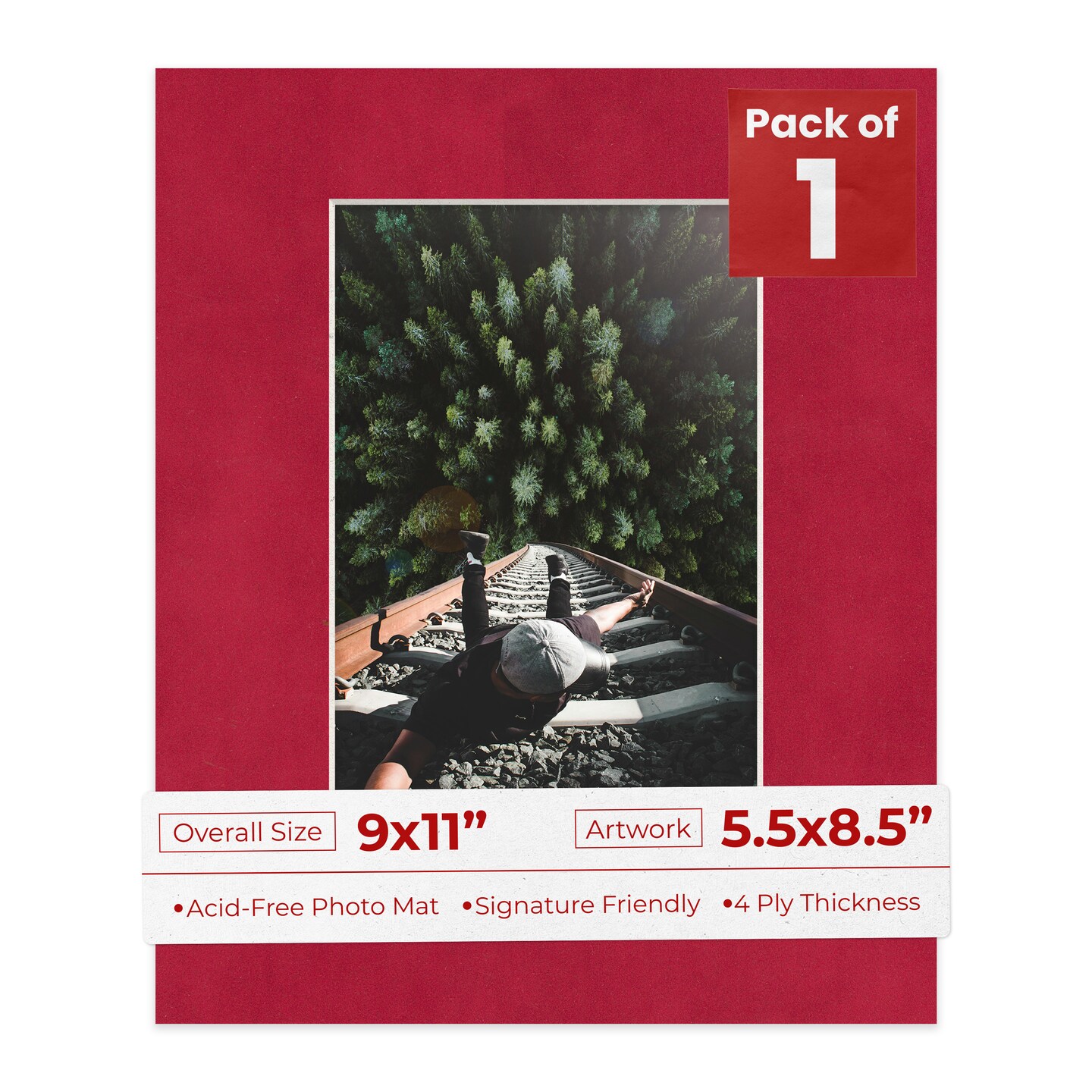 Red Suede Mat Board for 9x11 Frames - Fits 5.5x8.5 Photos