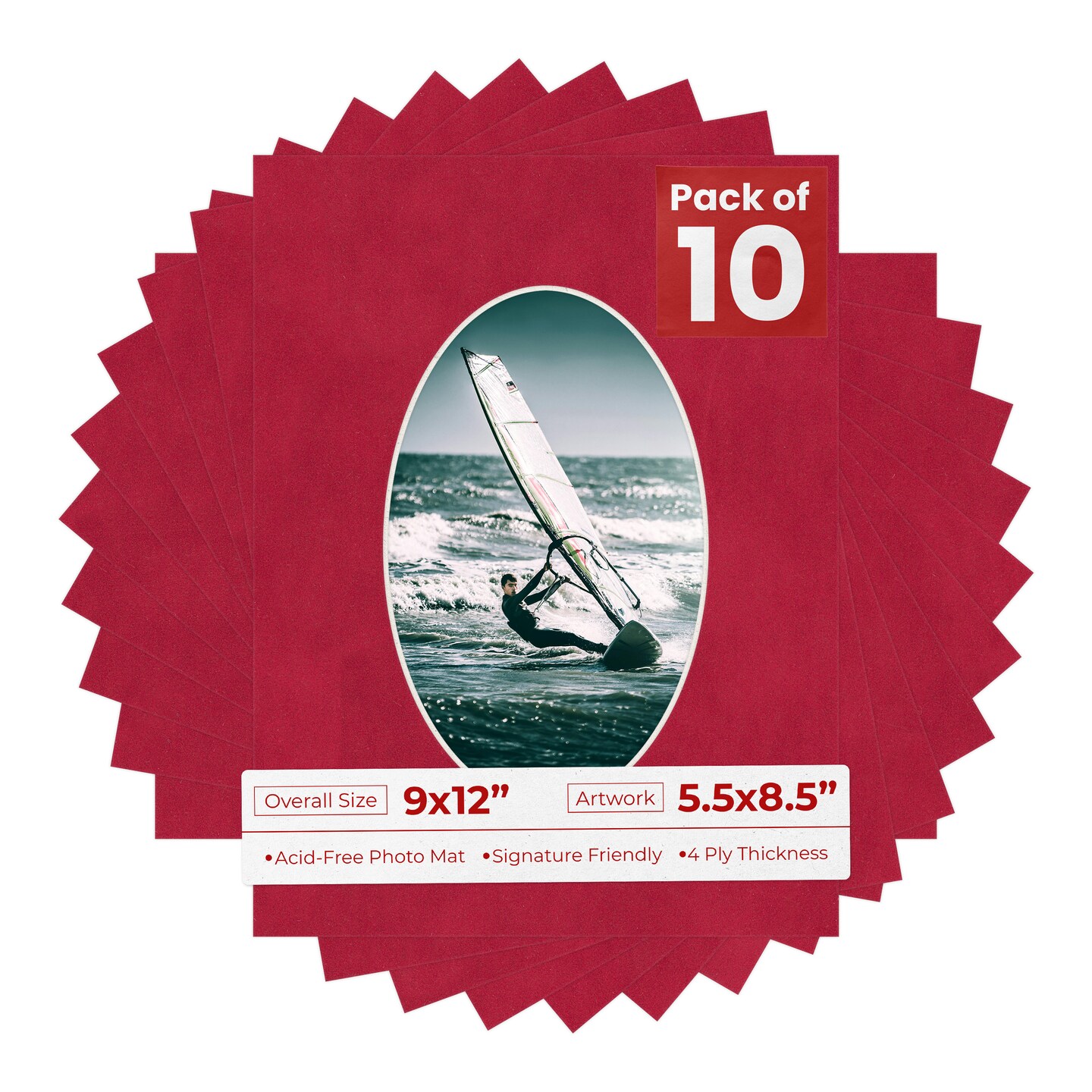 Red Suede Mat Board for 9x12 Frames - Oval Opening for 5.5x8.5 Photos