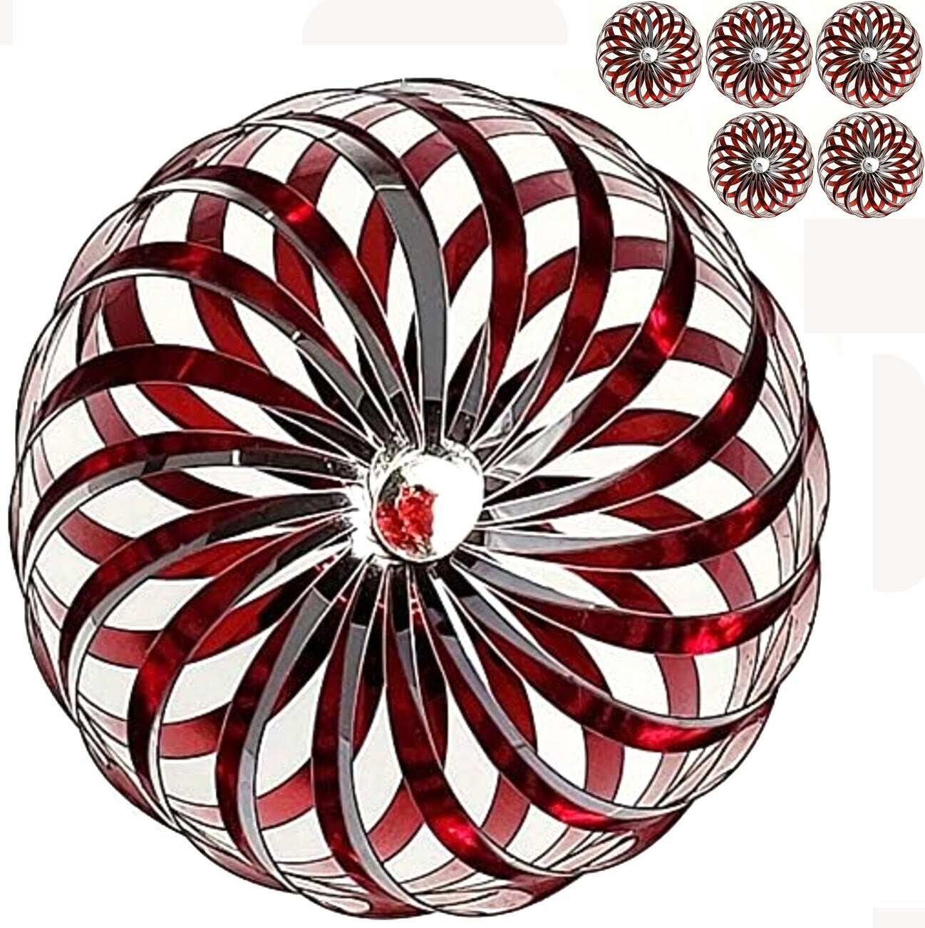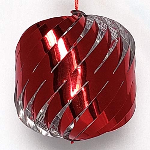 Red Swirl Pop-up Christmas Ball Ornaments 5 ct. 3"; COLLAPSIBLE Xmas Tree Reversible Plastic Ornaments; Shatterproof