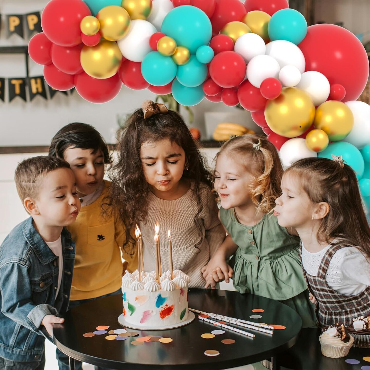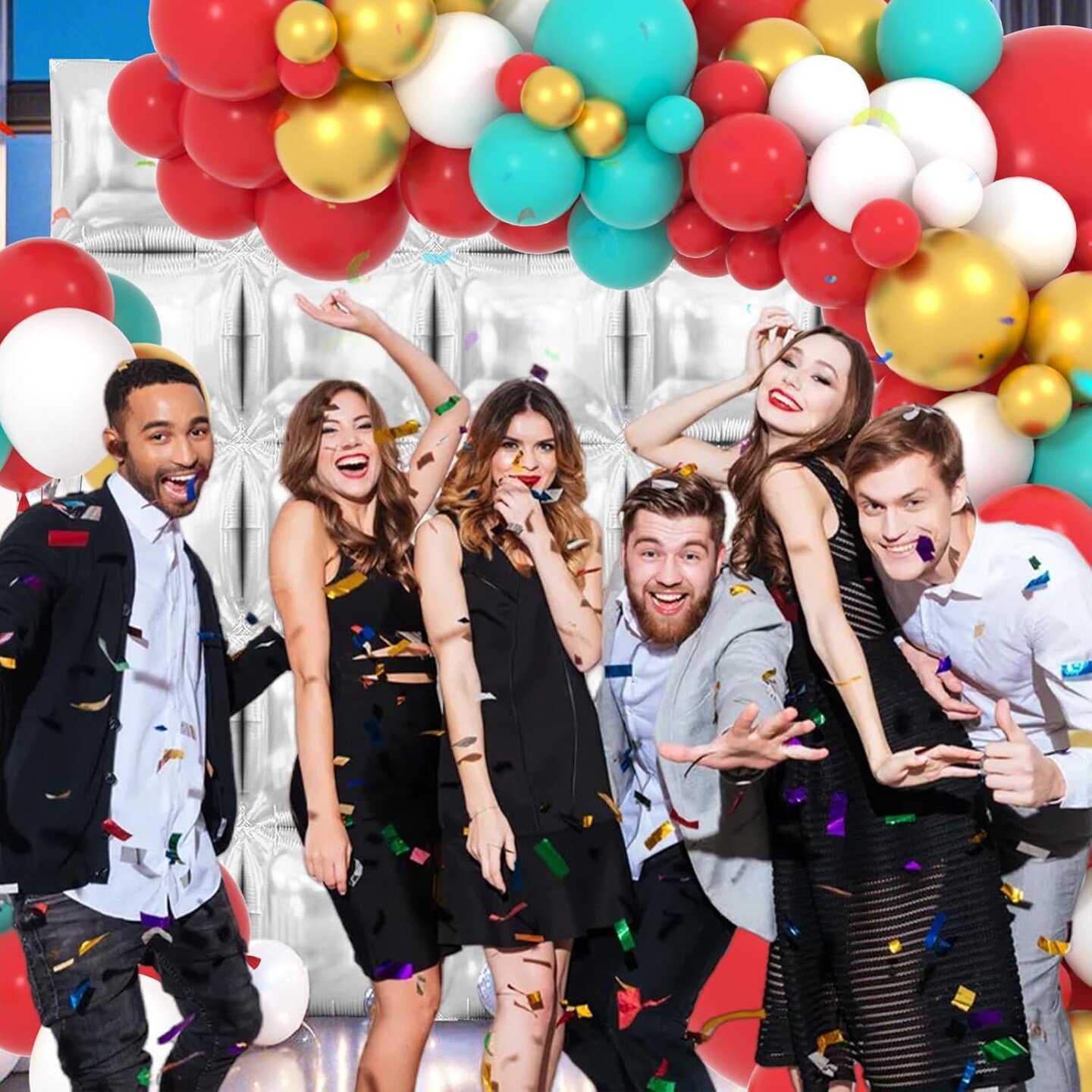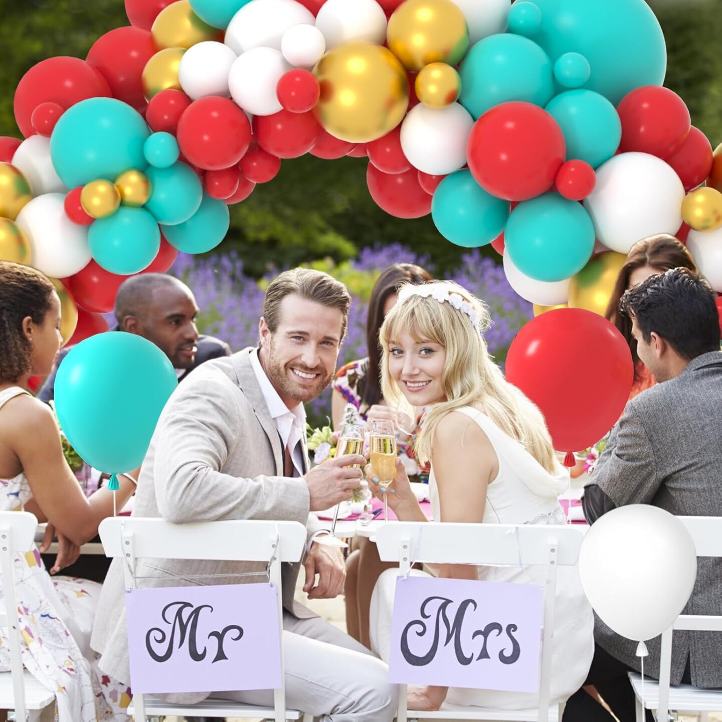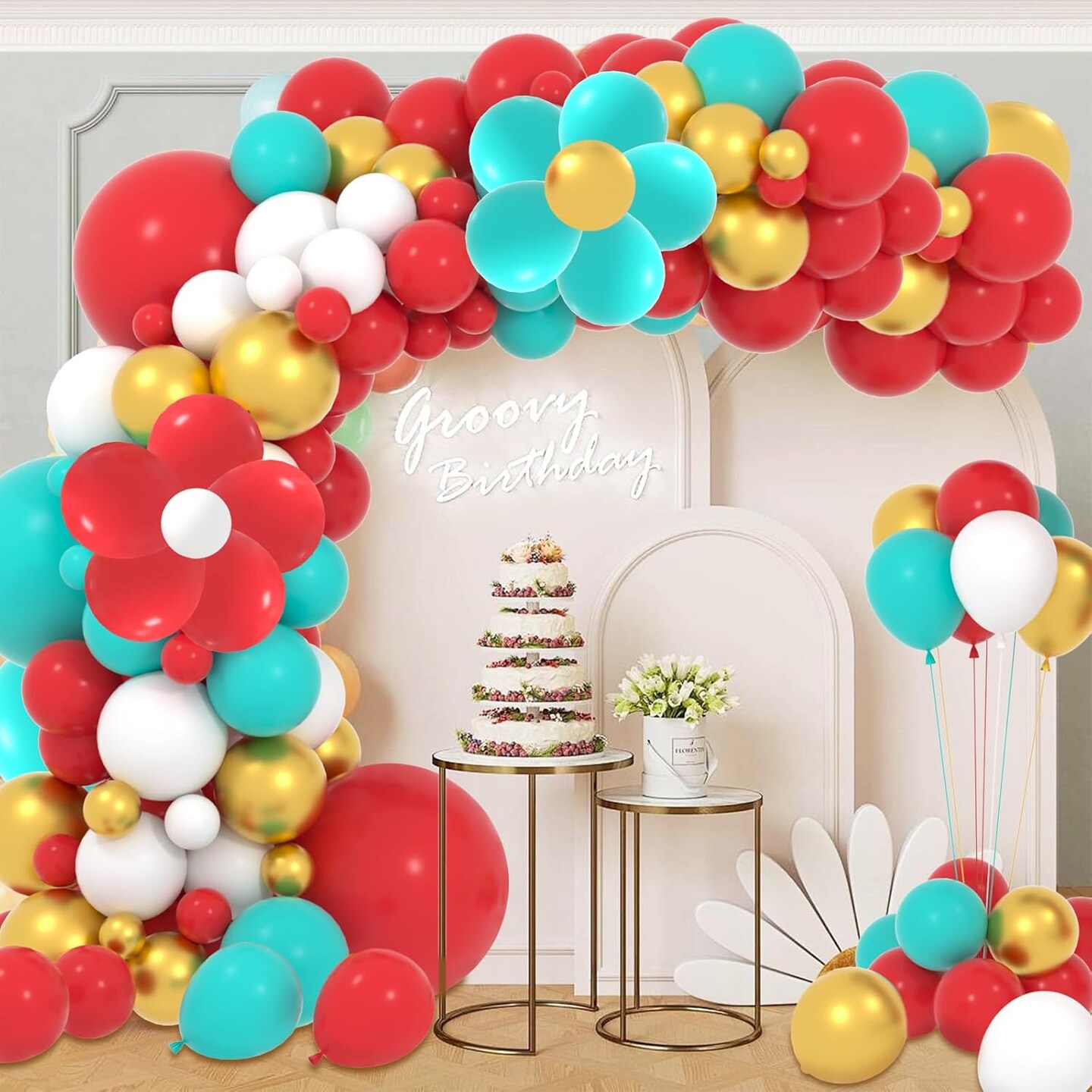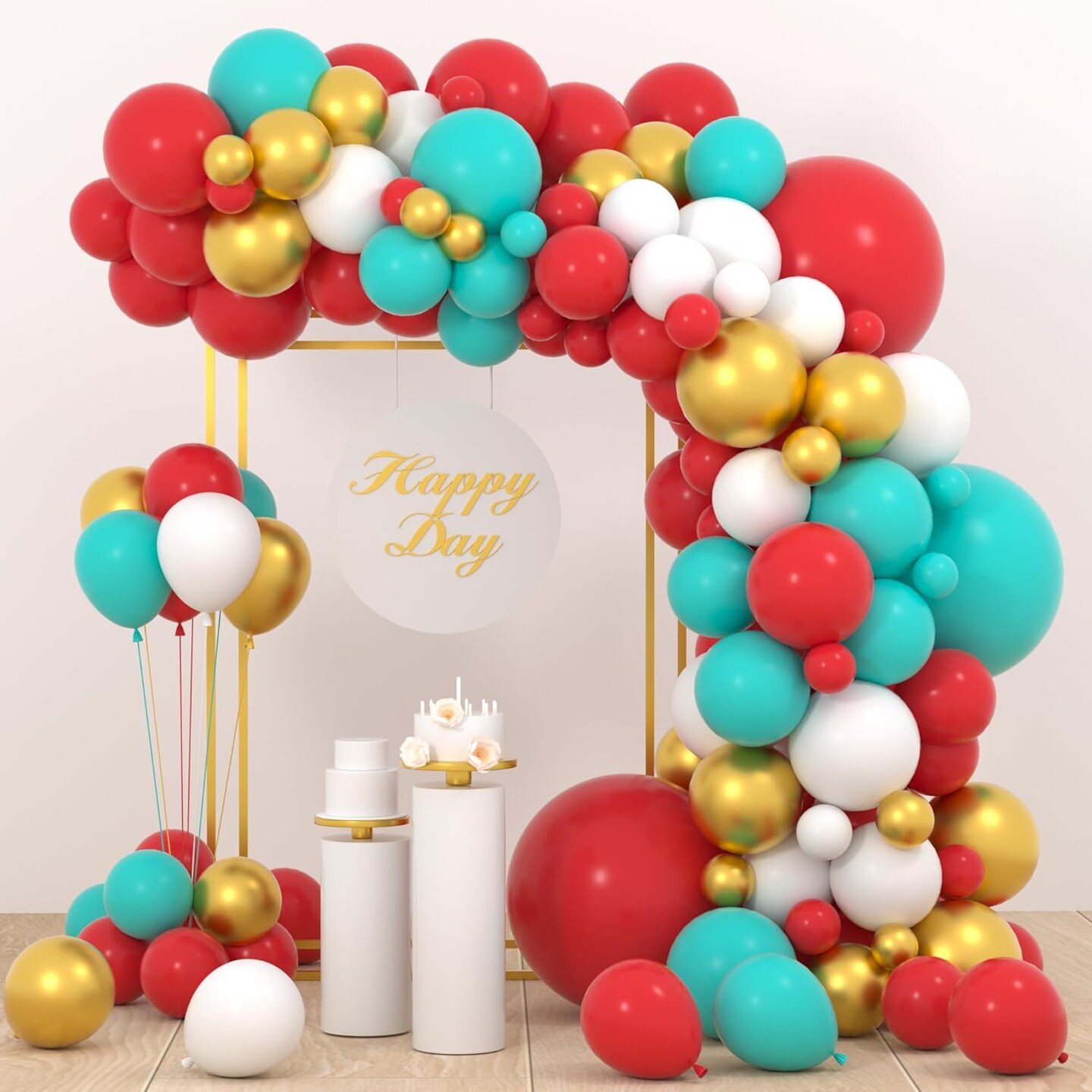 Red Teal Blue White Gold Balloon Garland Arch Kit