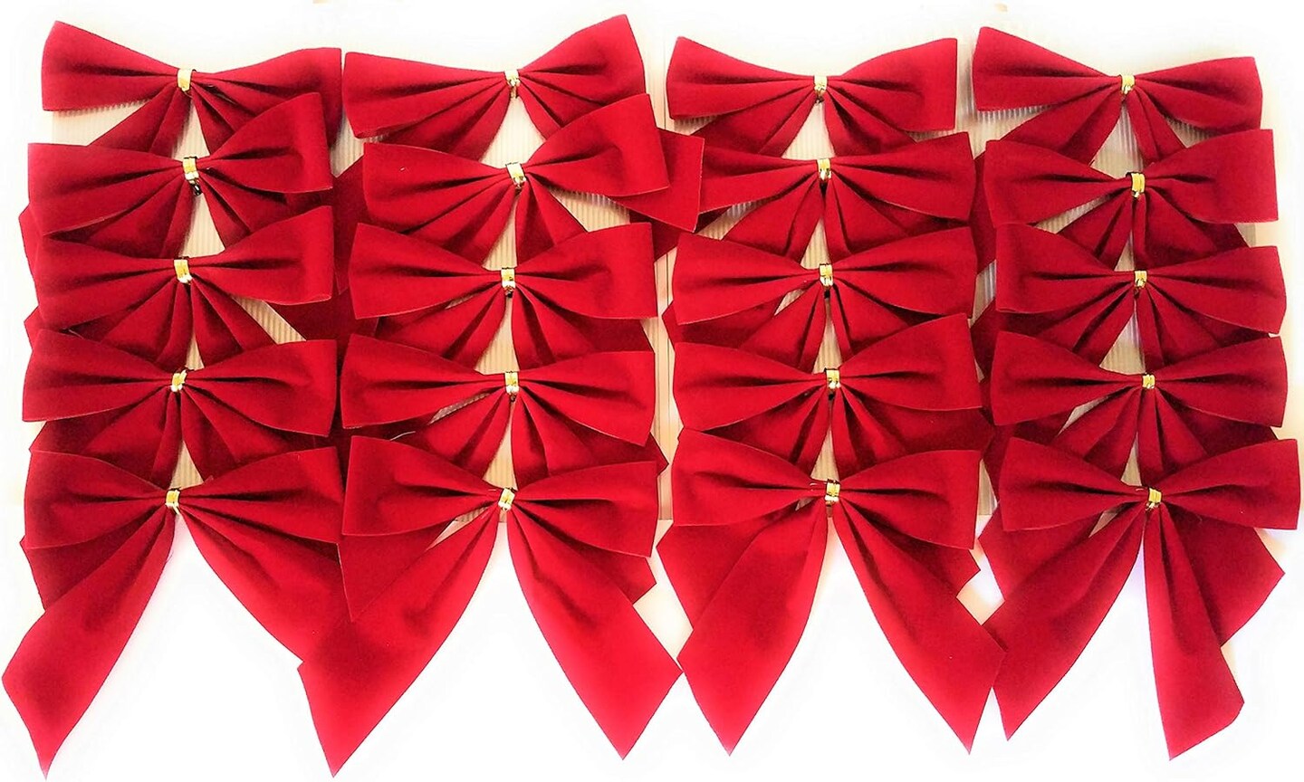 Red Velvet Christmas Bows - 20 Pack | 4.5 x 4.5 Inch Holiday Ribbon Bows for Indoor & Outdoor Decorating | Perfect for Christmas Trees, Wreaths, Garlands, & Gifts