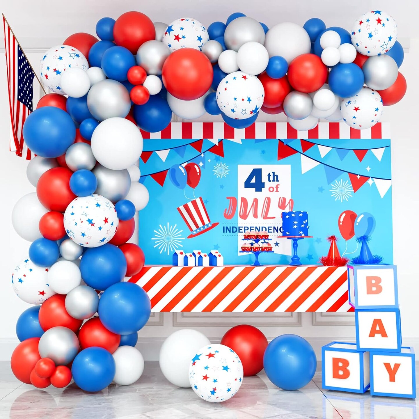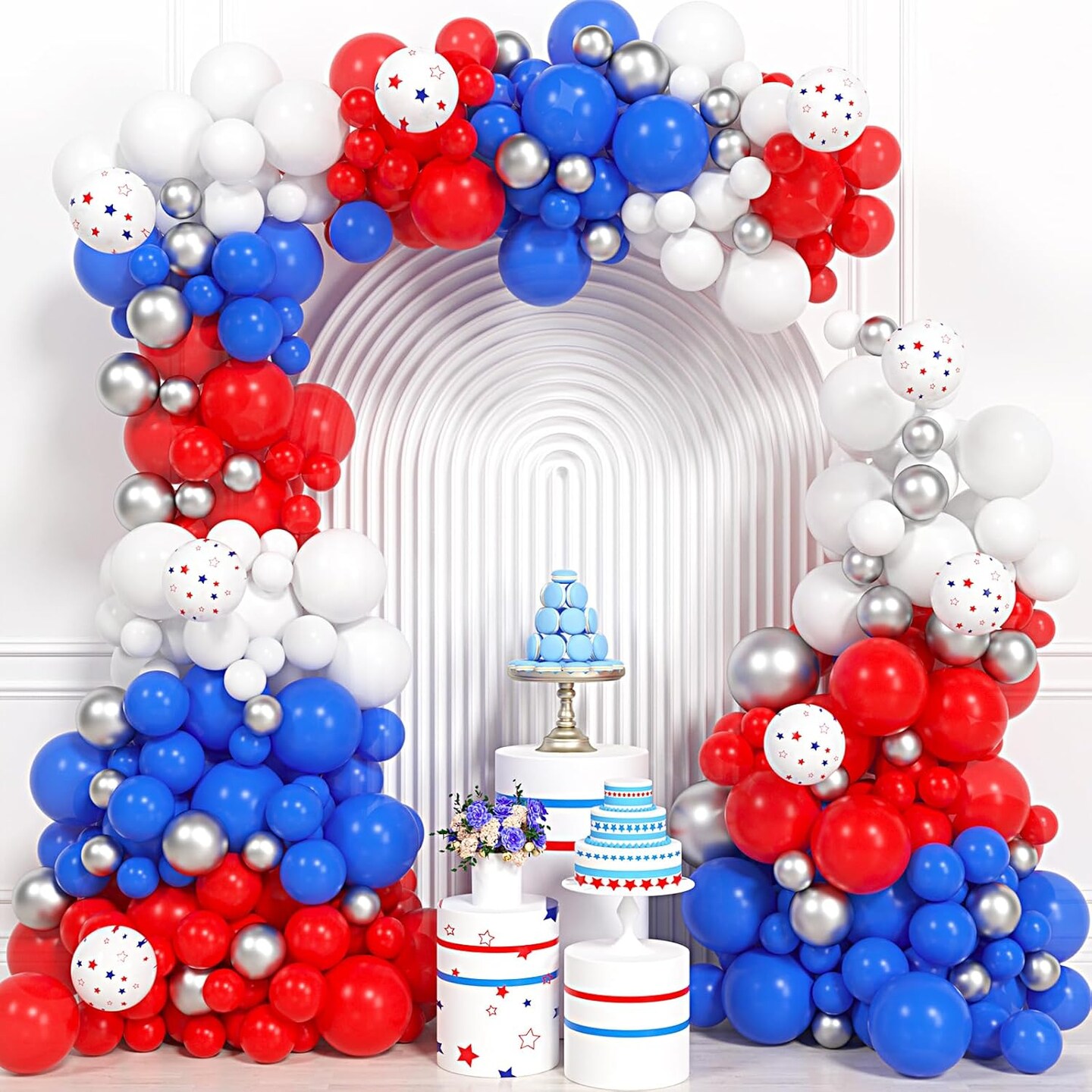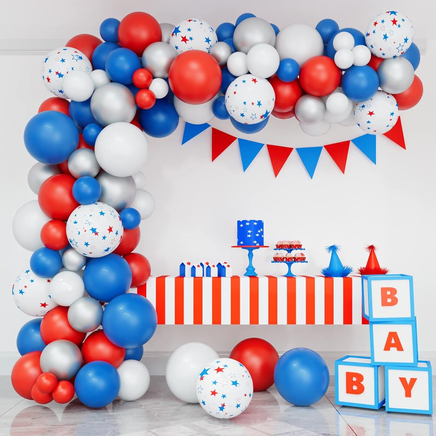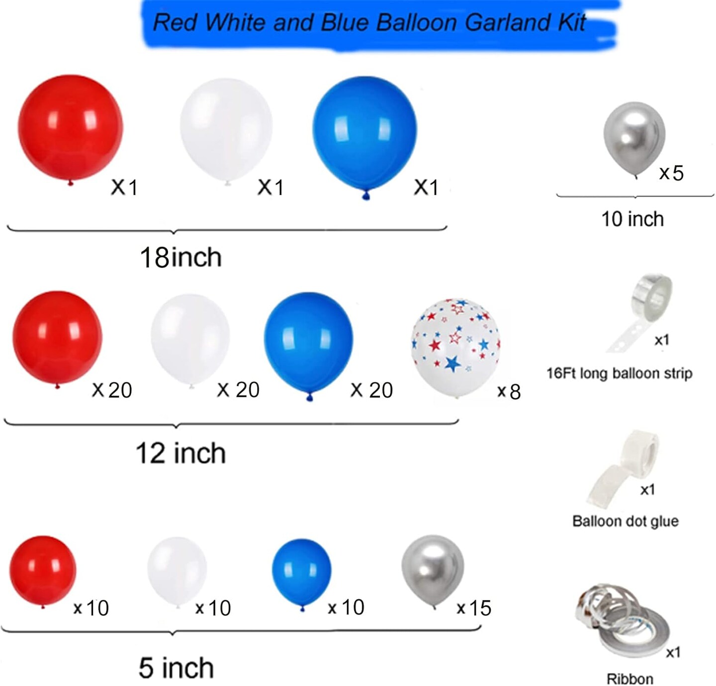 Red White and Blue Balloon Garland 4th of July Arch Kit, Independence Day Balloon Garland Patriotic Decoration for Nautical Party Baseball Party Memorial Day
