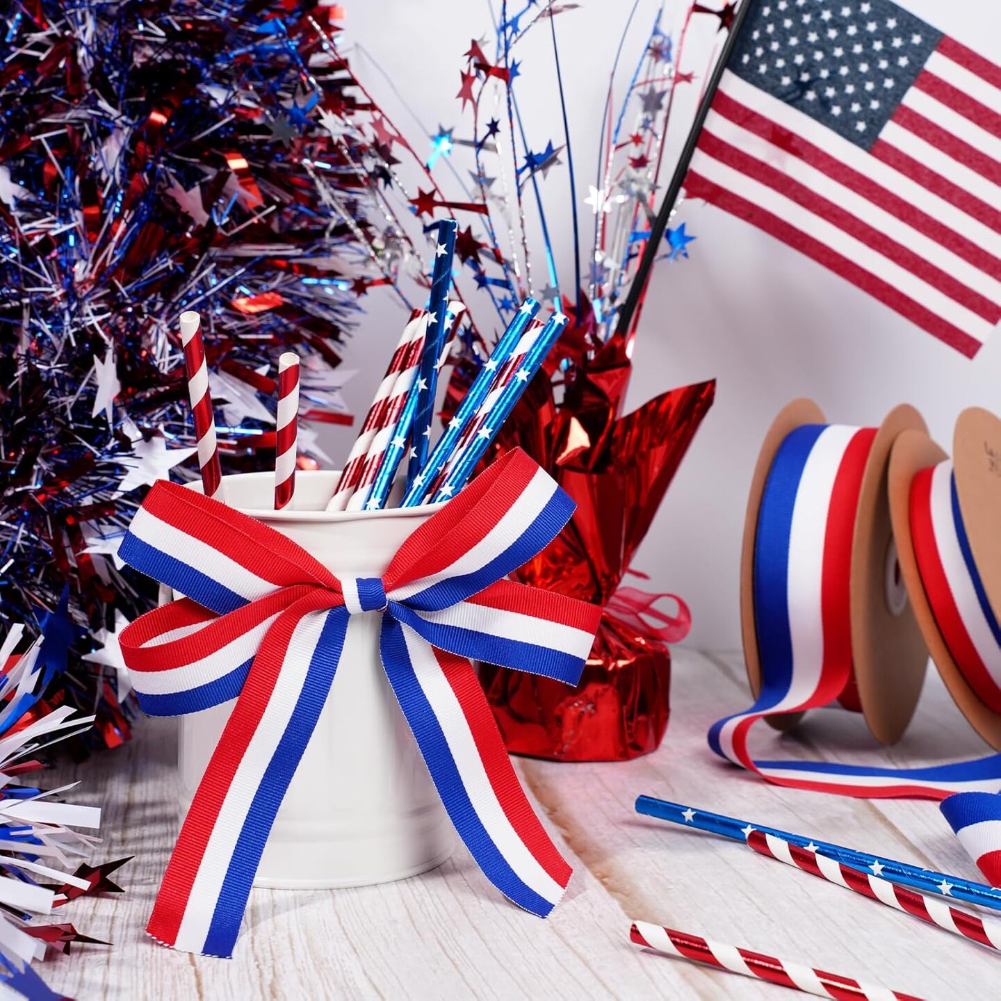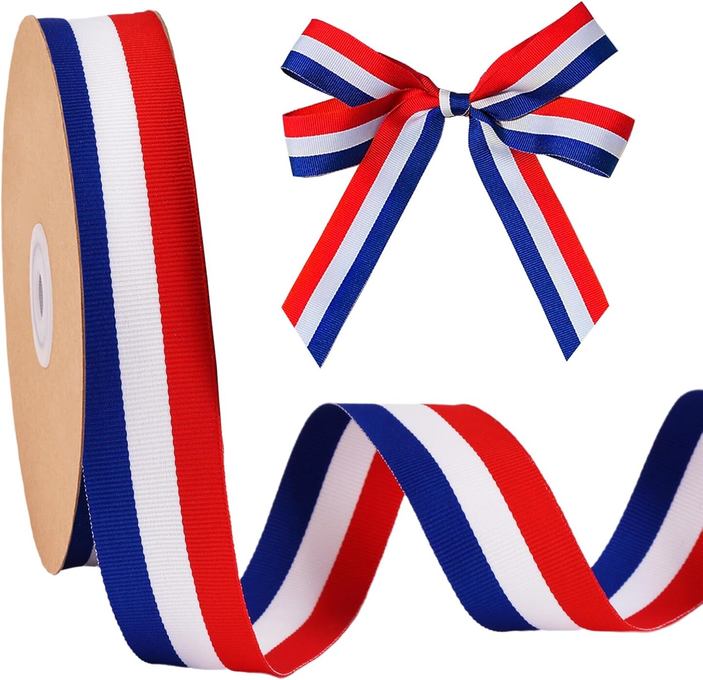 Red White and Blue Ribbon 1 Inch x 25 Yards American Grosgrain Striped Patriotic Ribbon for 4th of July