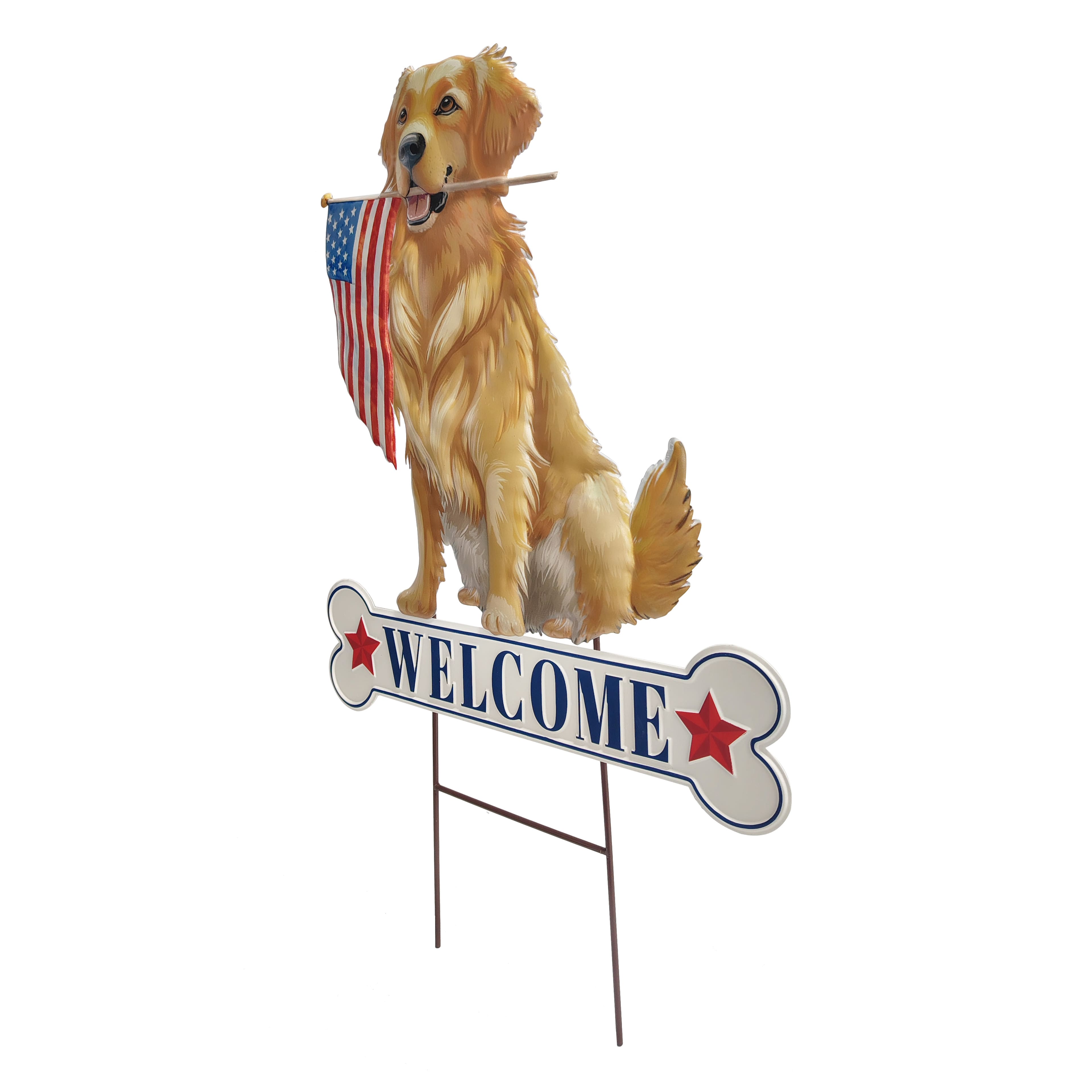 Red, White & Blue 30.25" Welcome Dog with Flag Metal Yard Stake by Celebrate It™