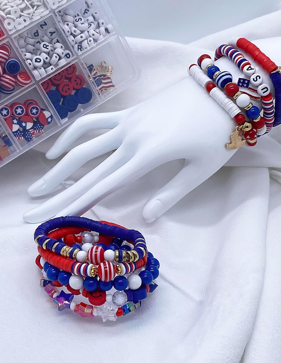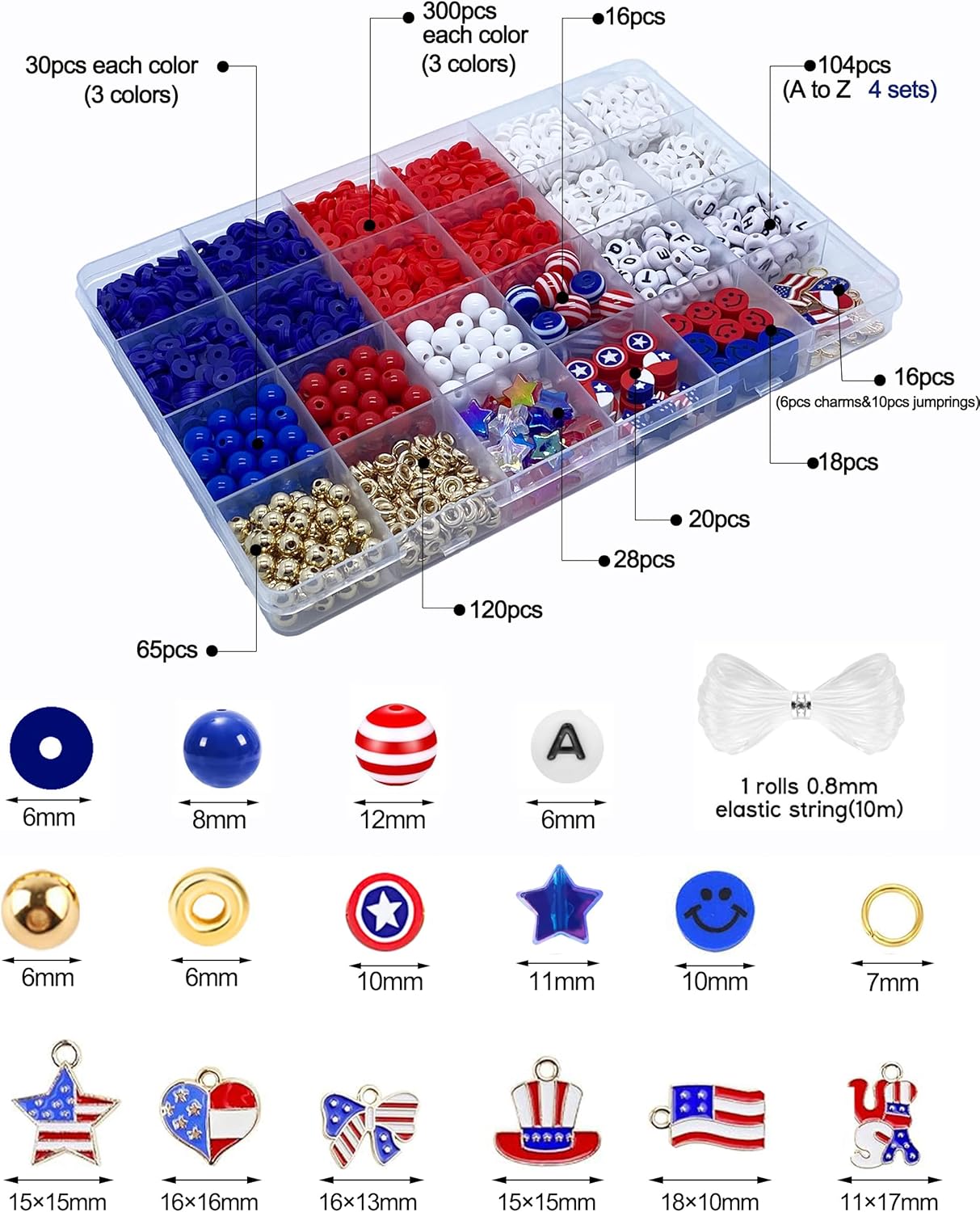 Red White Blue Beads Bracelet Making Kit, 3000+ 4th of July Clay Beads Heishi Round Acrylic Gold Spacer Letter Beads for Jewelry Making, Friendship Bracelet Bead Ki with Charms for DIY Crafts