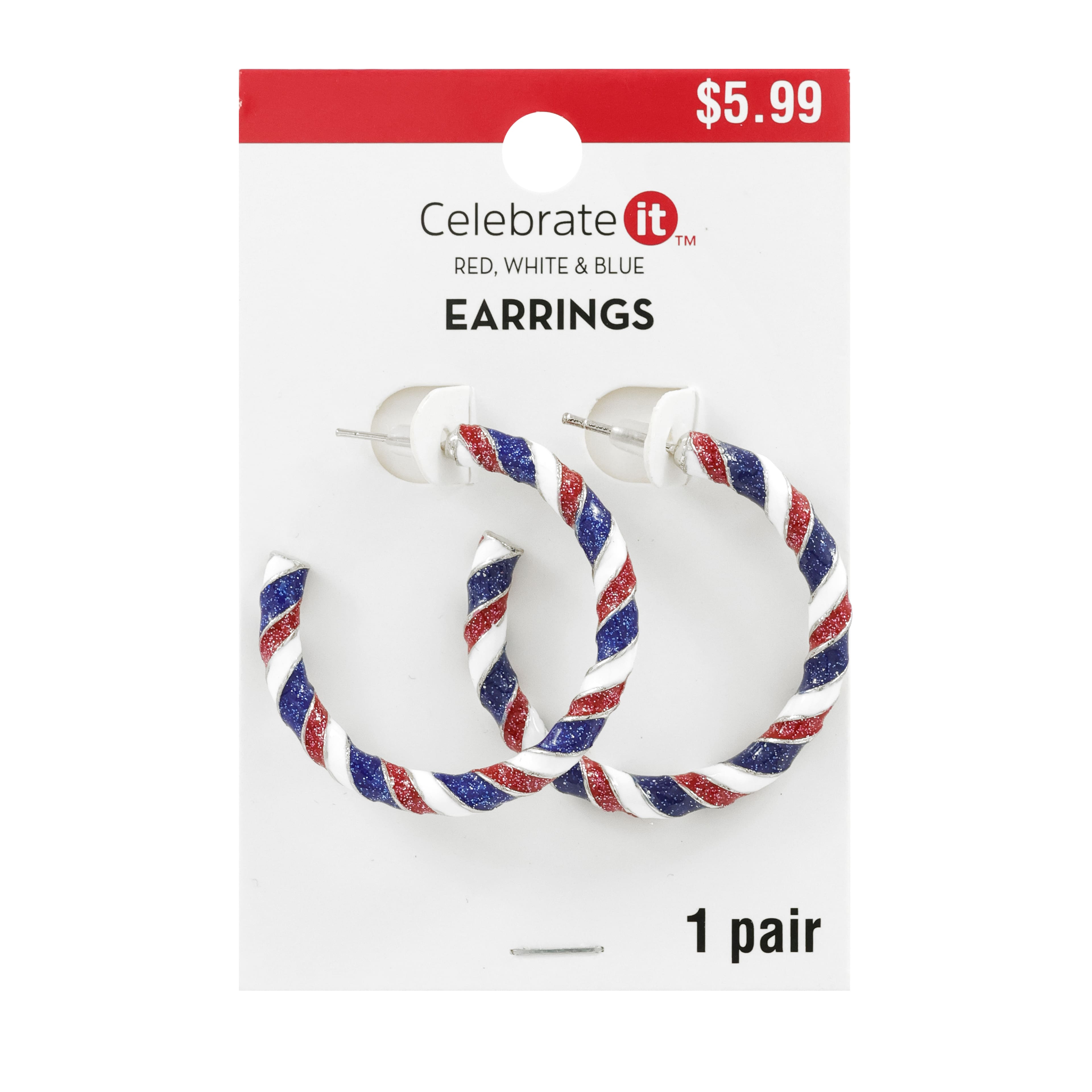 Red, White & Blue Striped Hoop Earrings by Celebrate It™