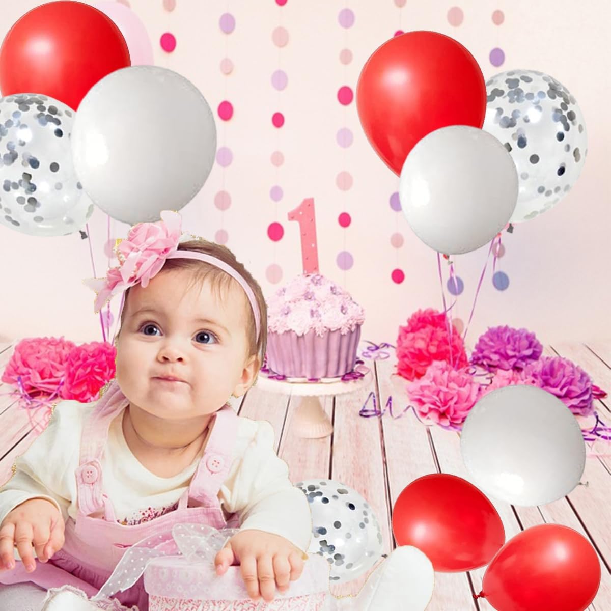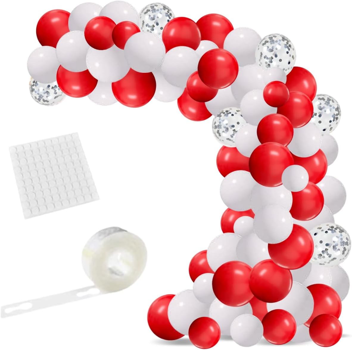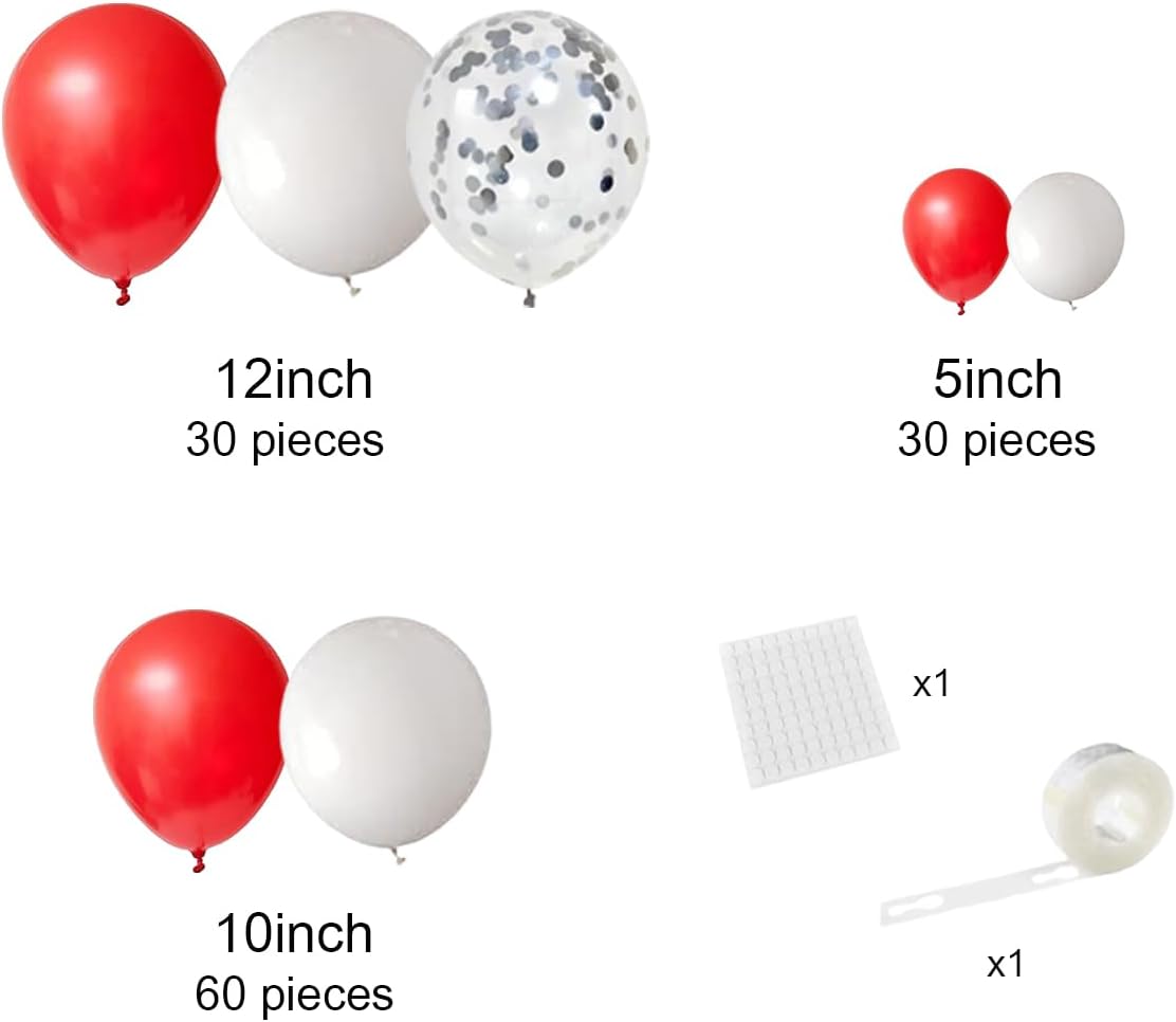 Red, White, Silver Balloons Kit, 122Pcs Red White Silver Balloon Arch Balloon Garland Kit(Red White)