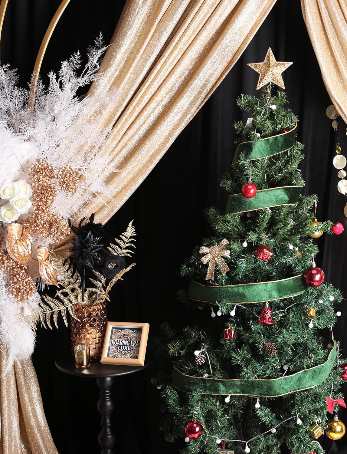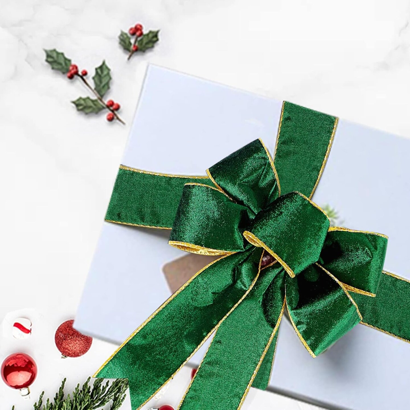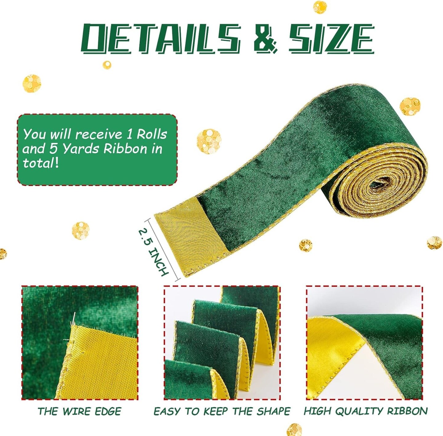Red Wide Velvet Ribbon Wired for Christmas Tree, Garland, Wreath, 1.5 Inch 10 Yards