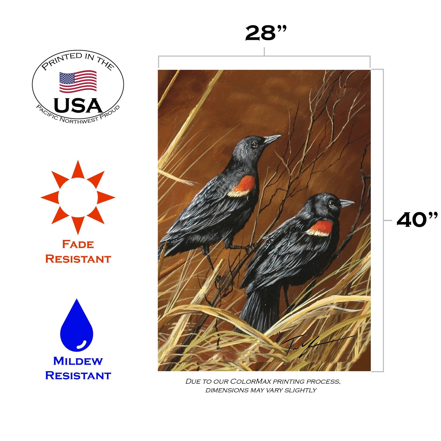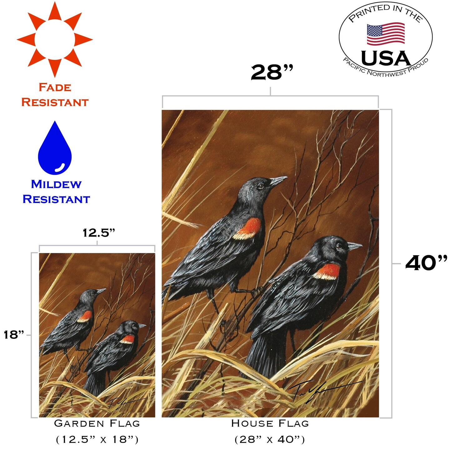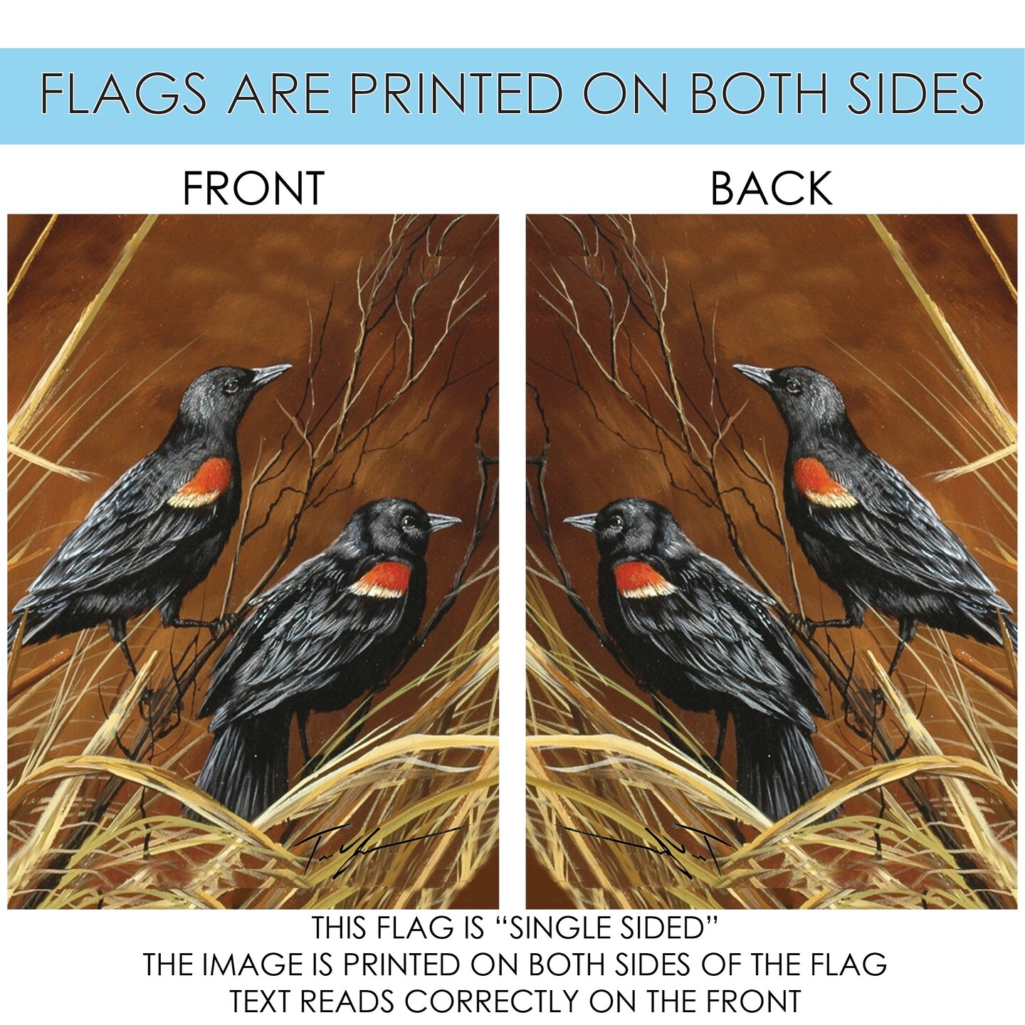 Red Winged Blackbirds Decorative Fall Flag