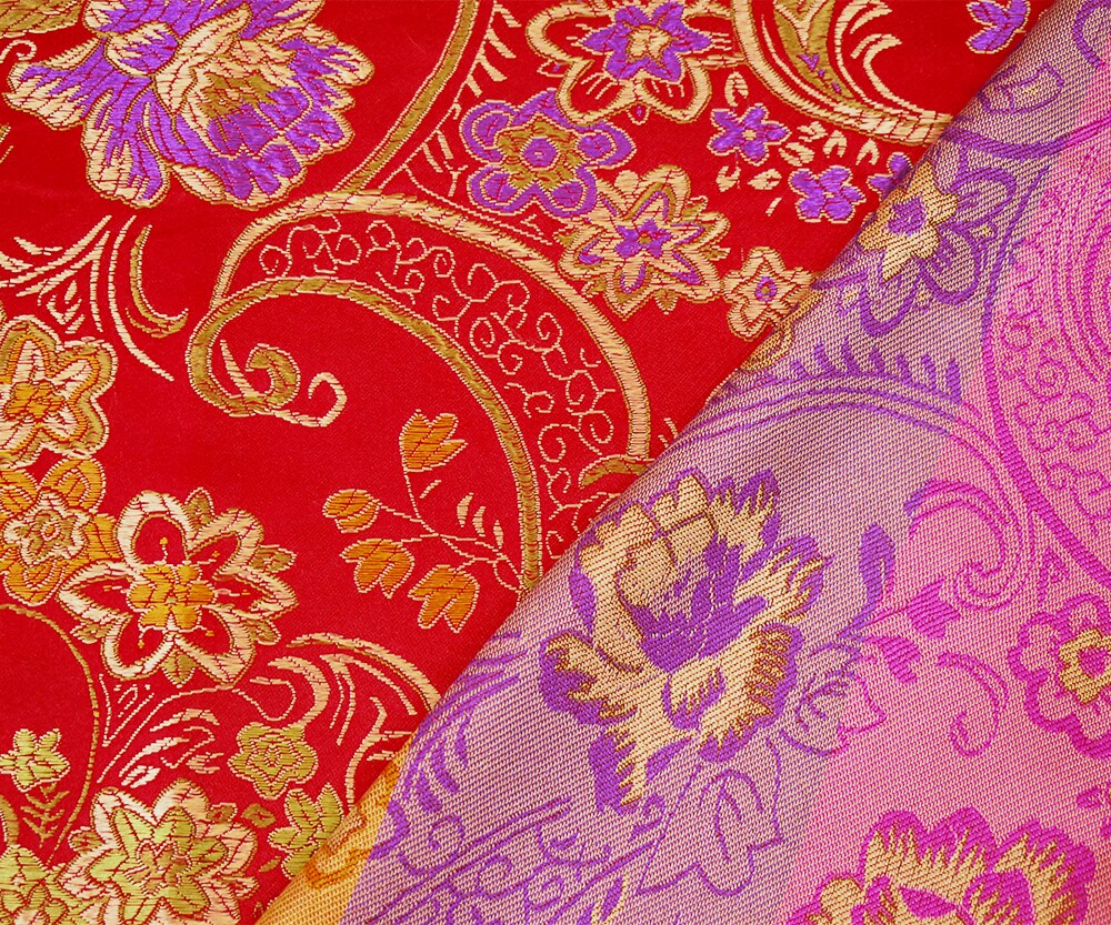 Red-Beige-Multi Polyester Floral Chinese Brocade Woven Fabric By the Yard