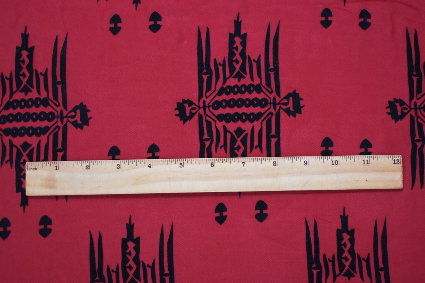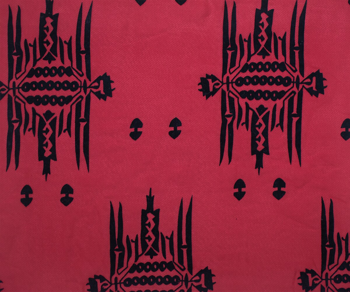 Red-Black Poly Aztec Motif Velvet Flocked Printed Chiffon Woven Fabric By the Yard