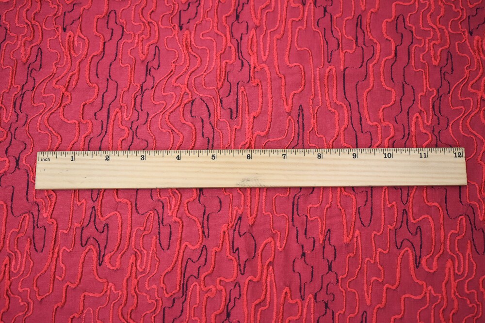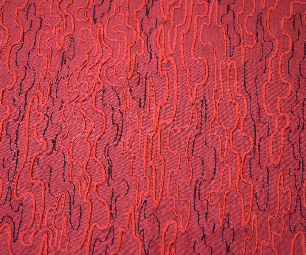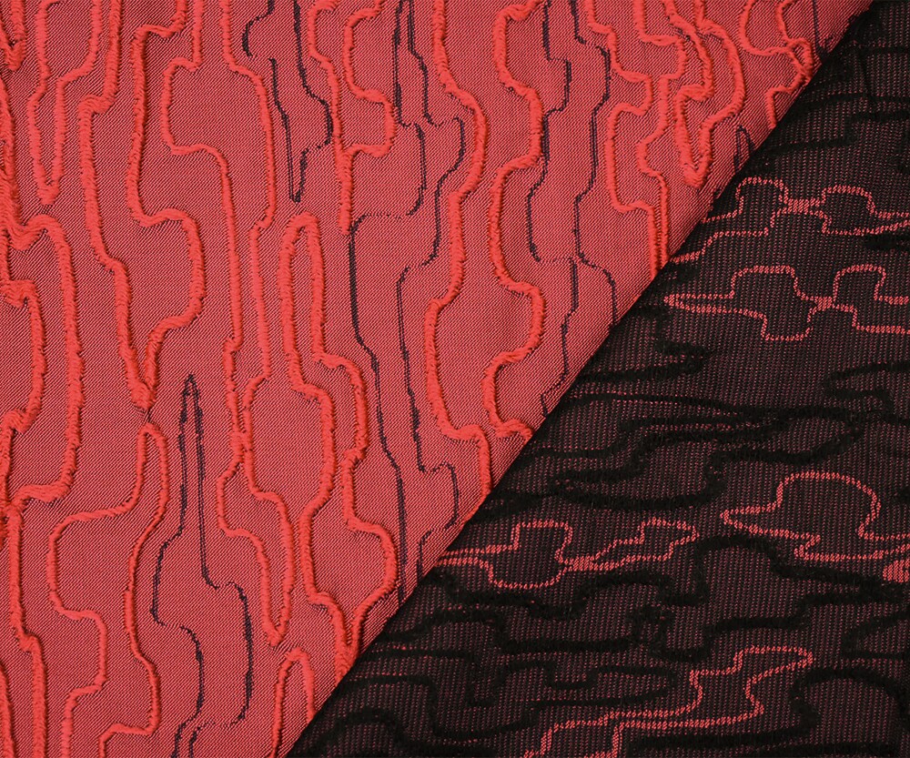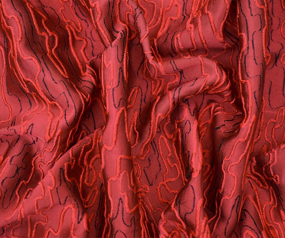 Red-Black Polyester Abstract Embroidered Jacquard Woven Fabric By the Yard