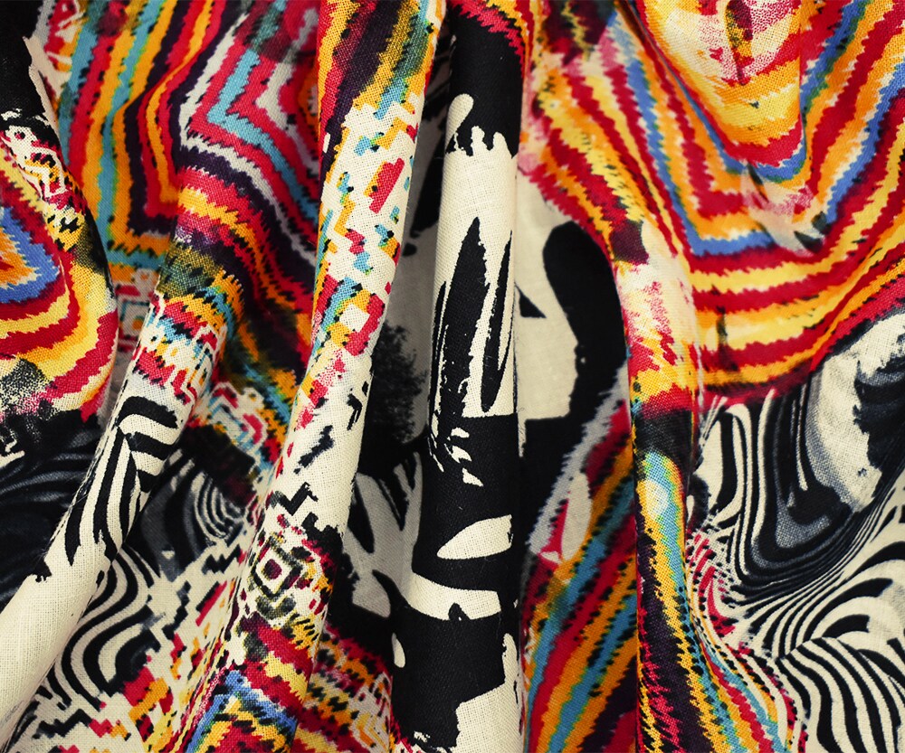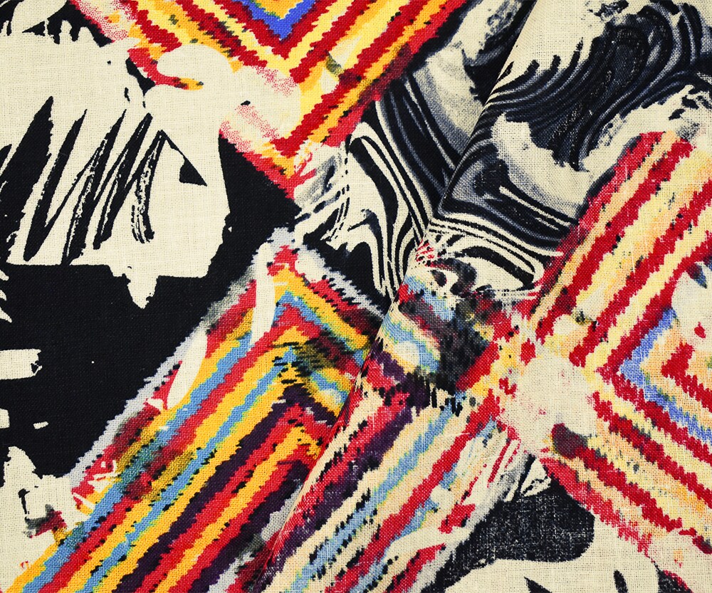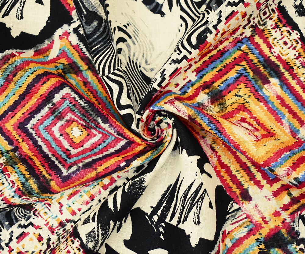 Red-Black-Multi Abstract Diamond Aztec Pattern Printed Linen Woven Fabric By the Yard