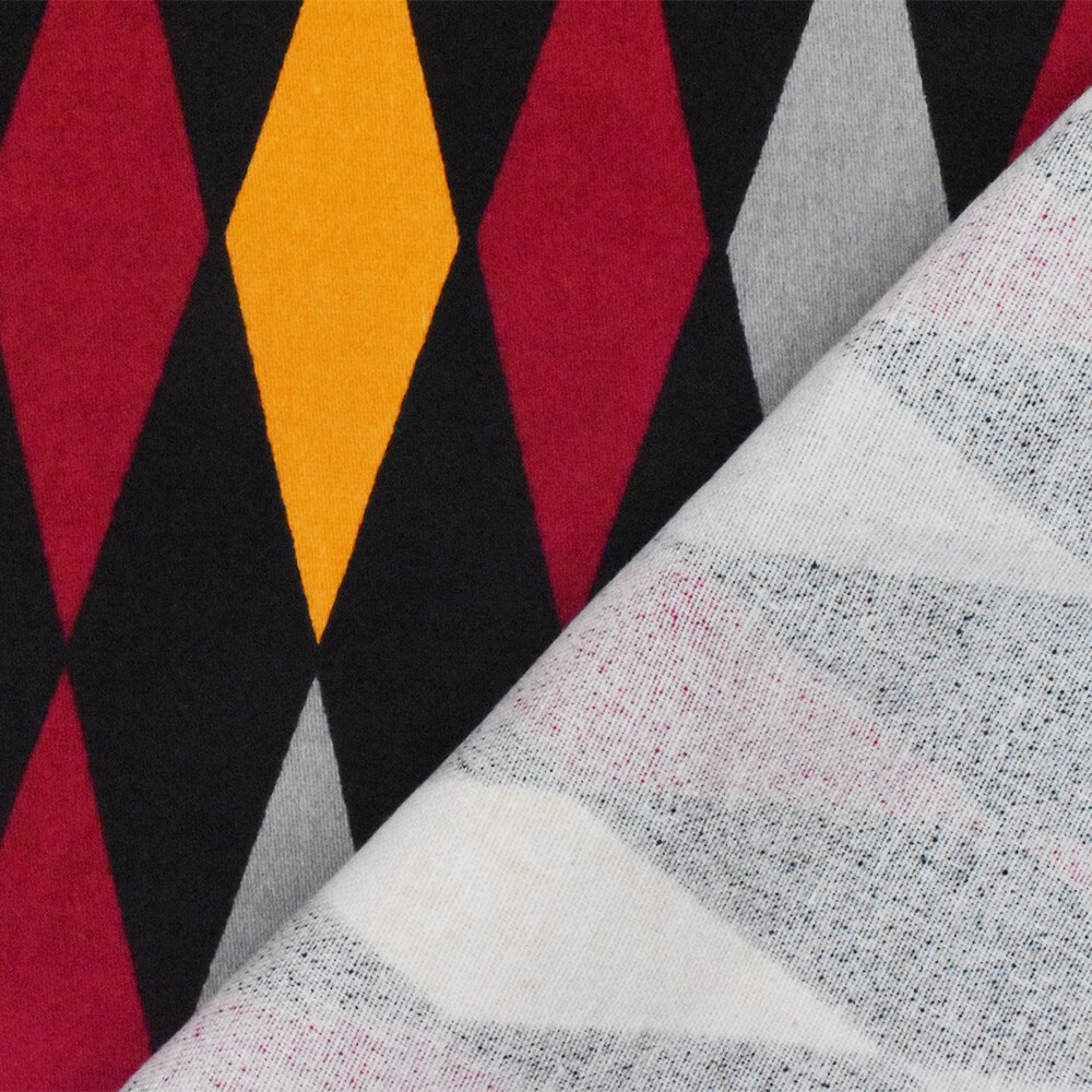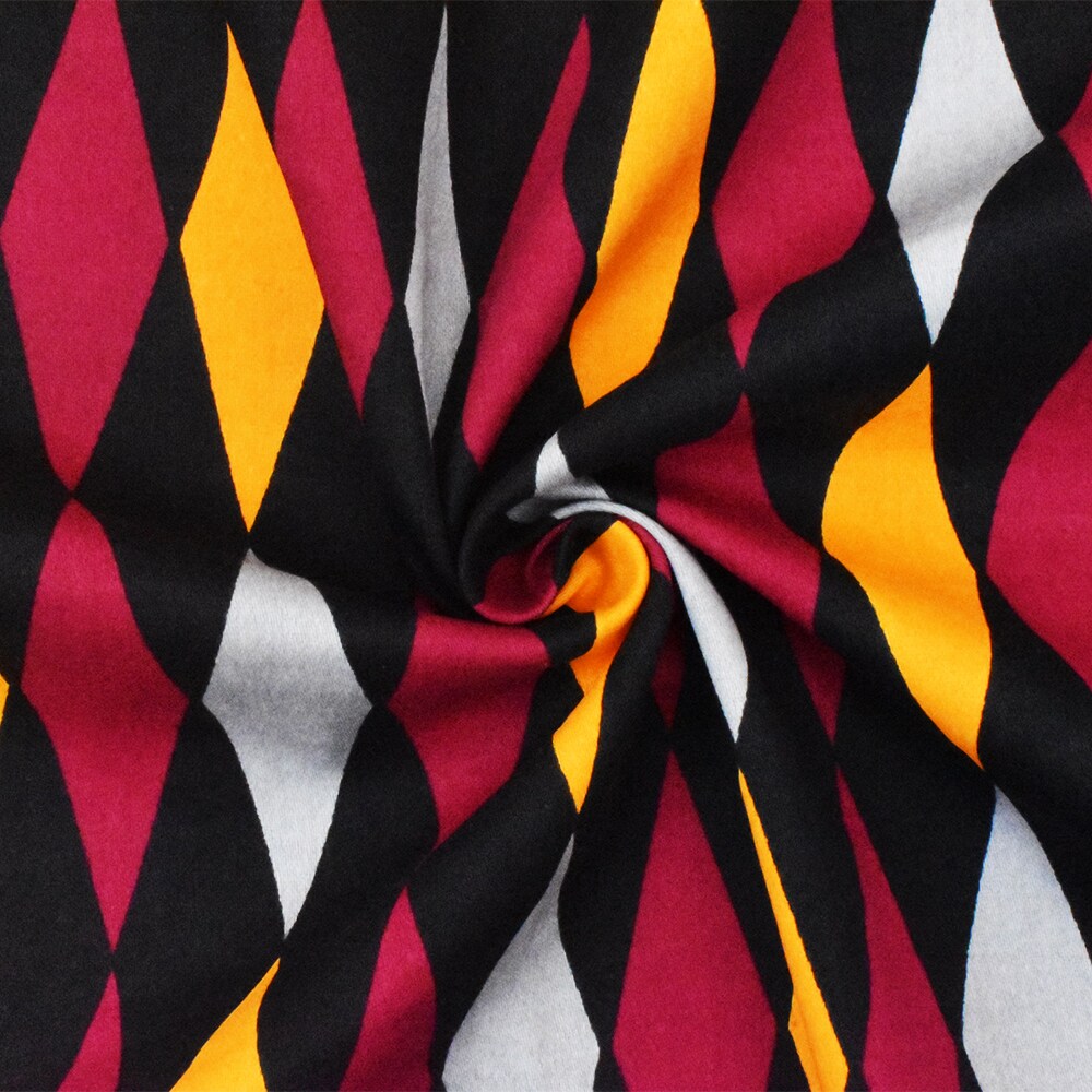Red-Black-Multi Diamond Printed Stretch Cotton Spandex Twill Sateen Fabric By the Yard