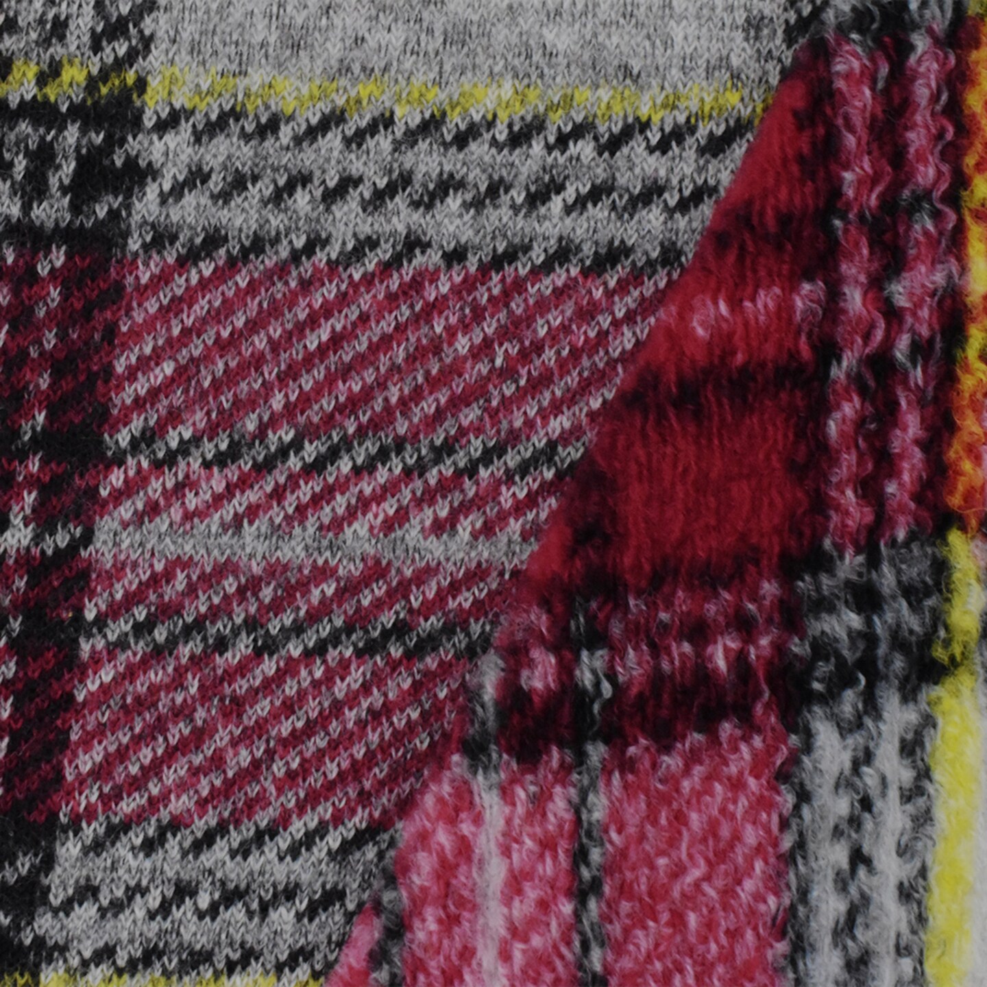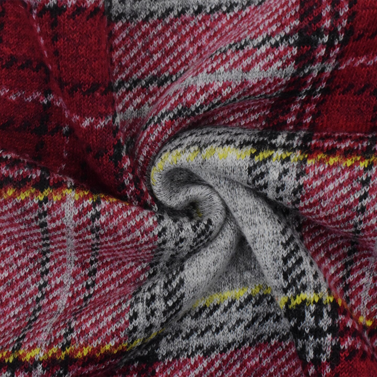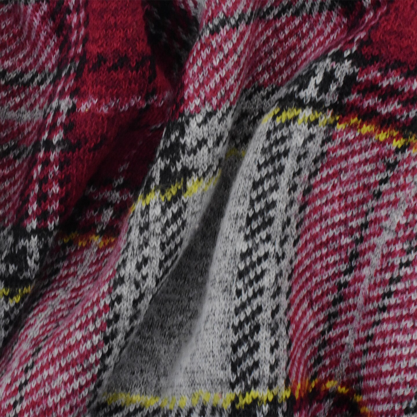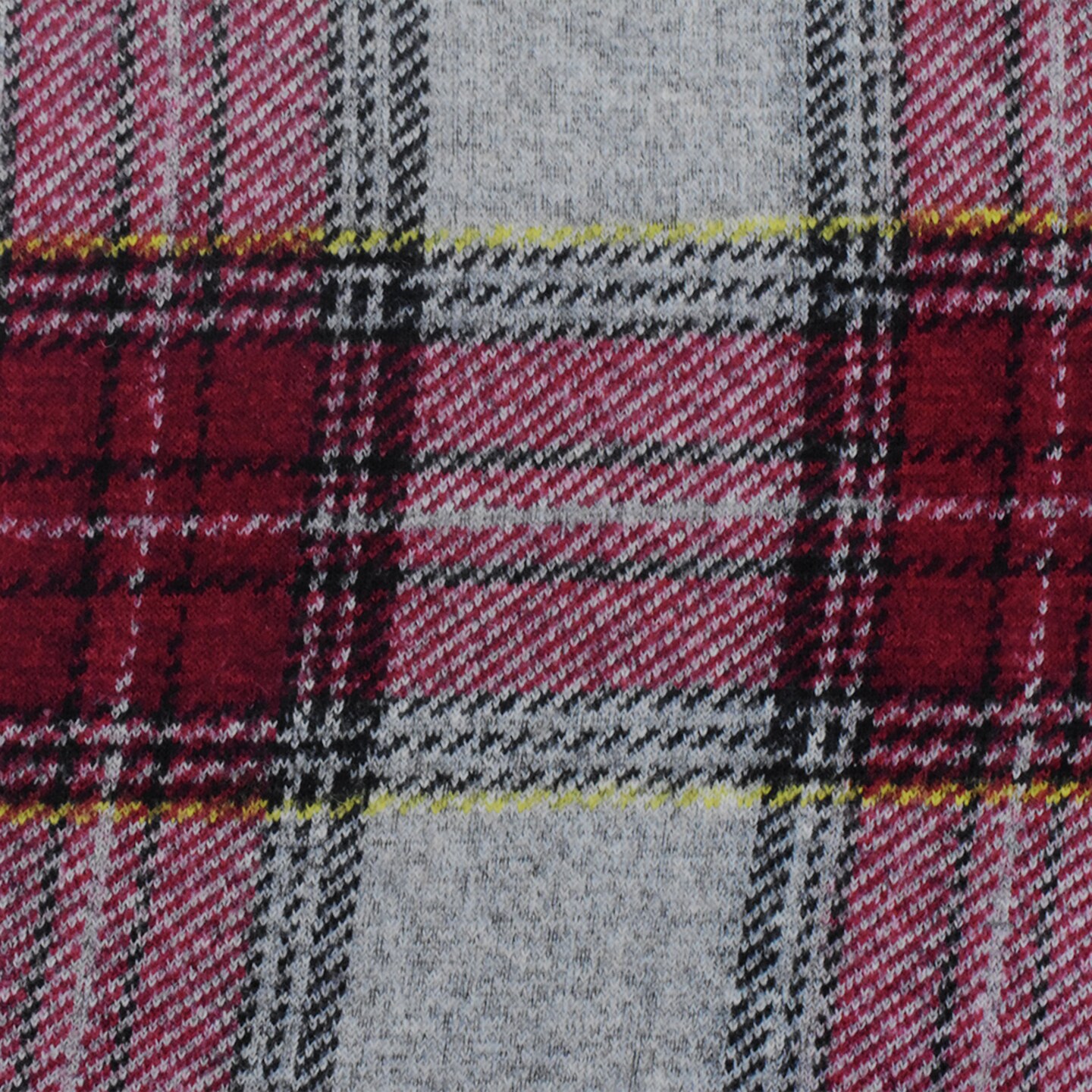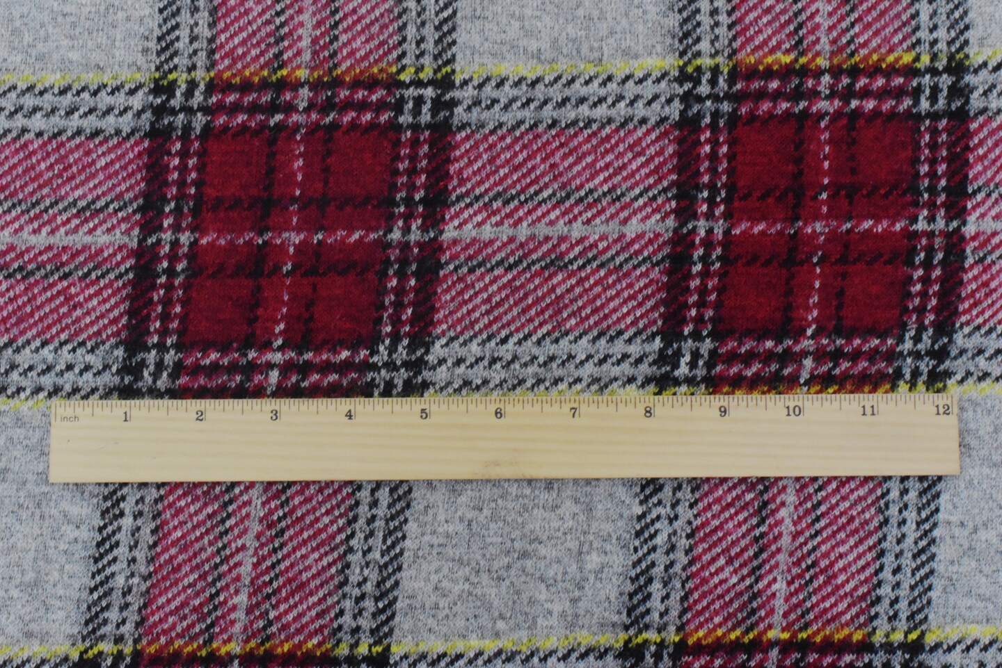 Red-Black-Multi Famous Designer Brushed Back Plaid Knit Jacketing Fabric By the Yard