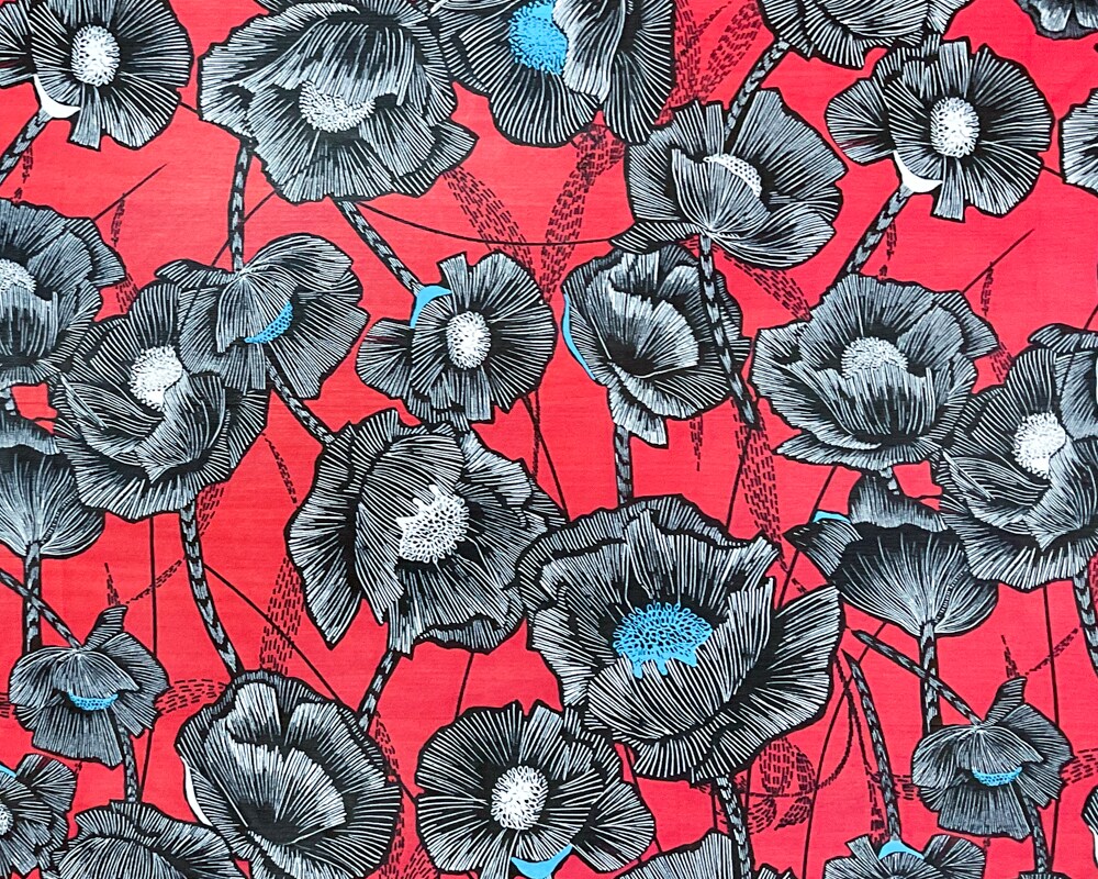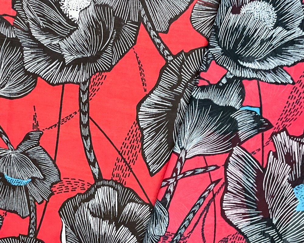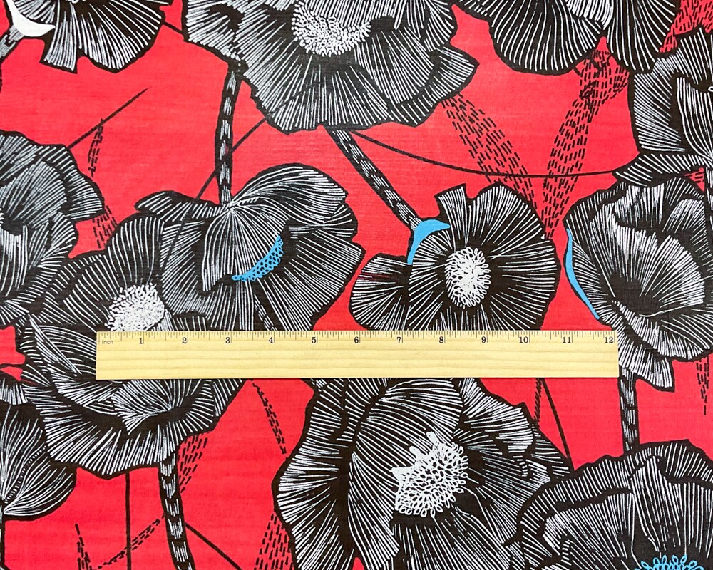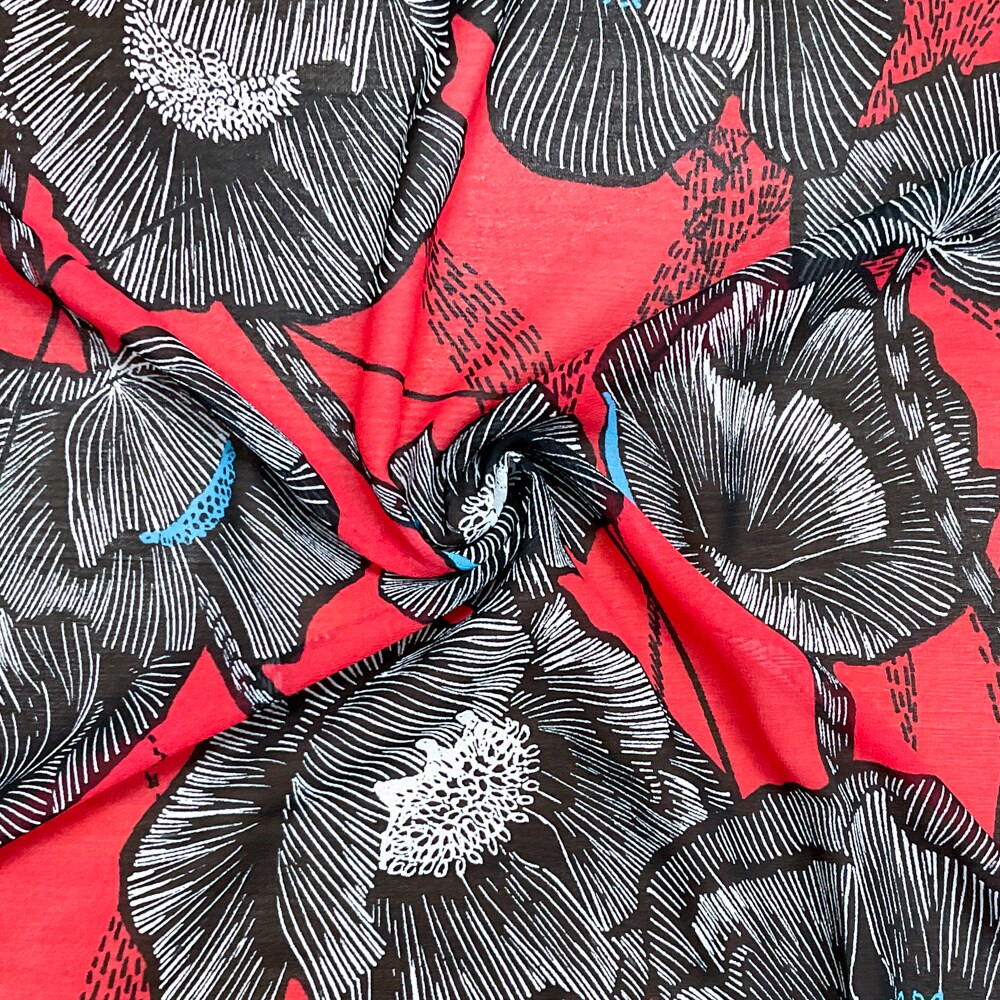 Red-Black-Multi Poly Floral Printed Chiffon Woven Fabric By the Yard