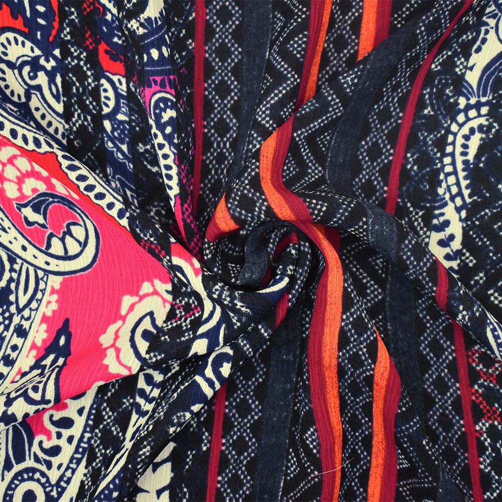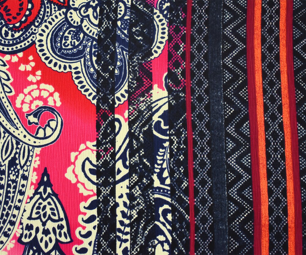 Red-Blue-Multi Paisley Border Printed Dobby Woven Fabric By the Yard