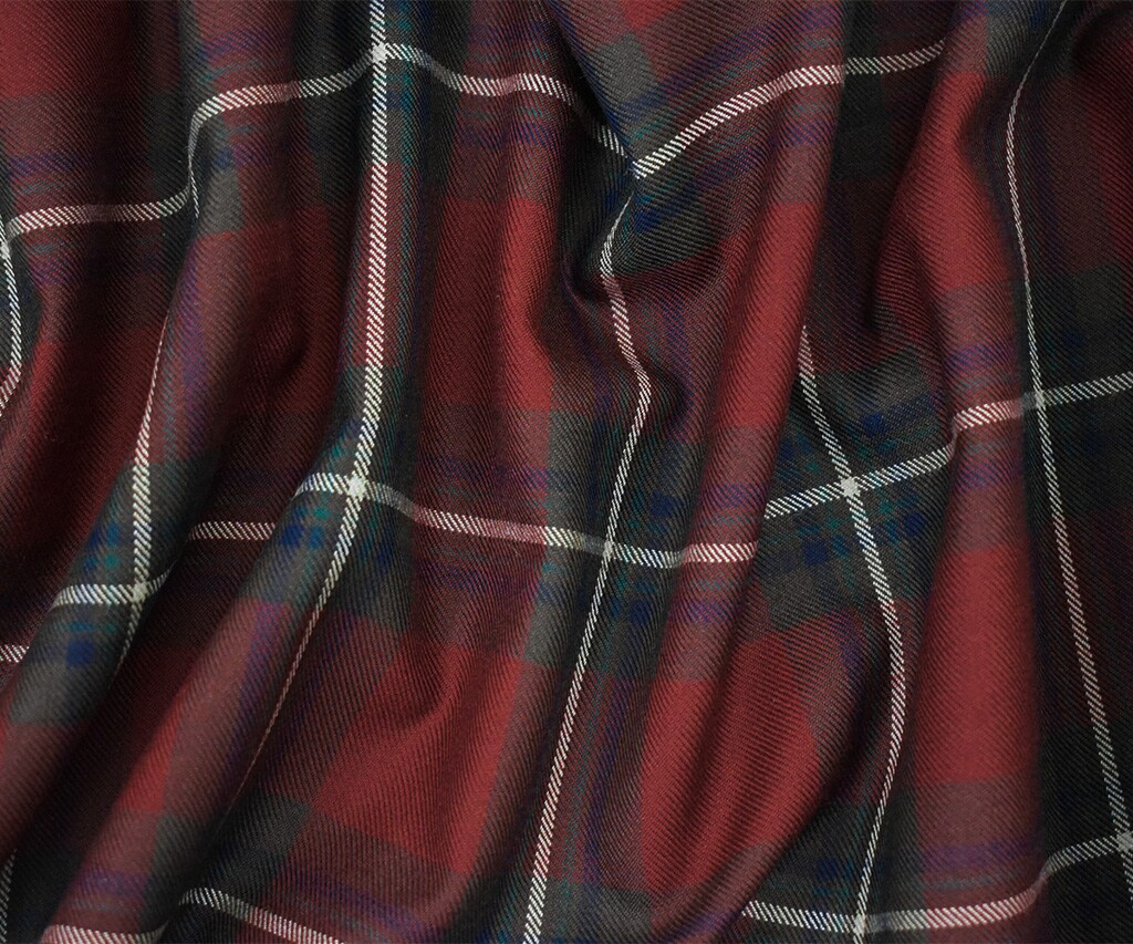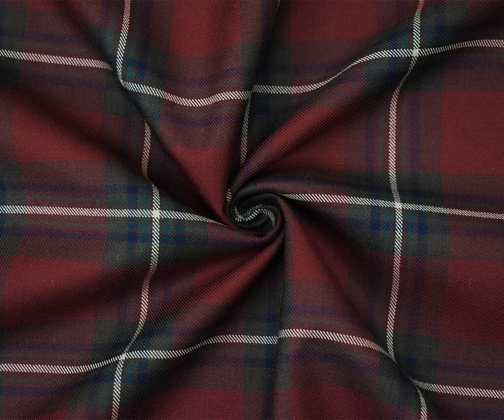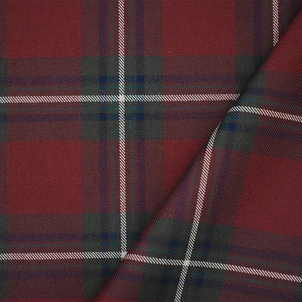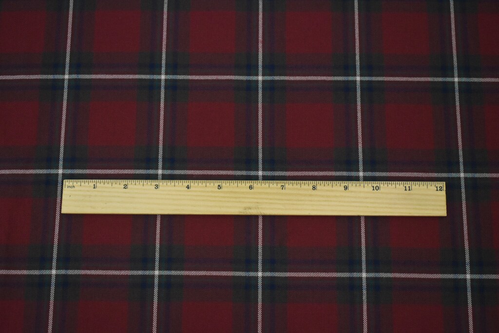 Red-Green-Multi Wool Polyester Plaid Check Twill Woven Suiting Fabric By the Yard