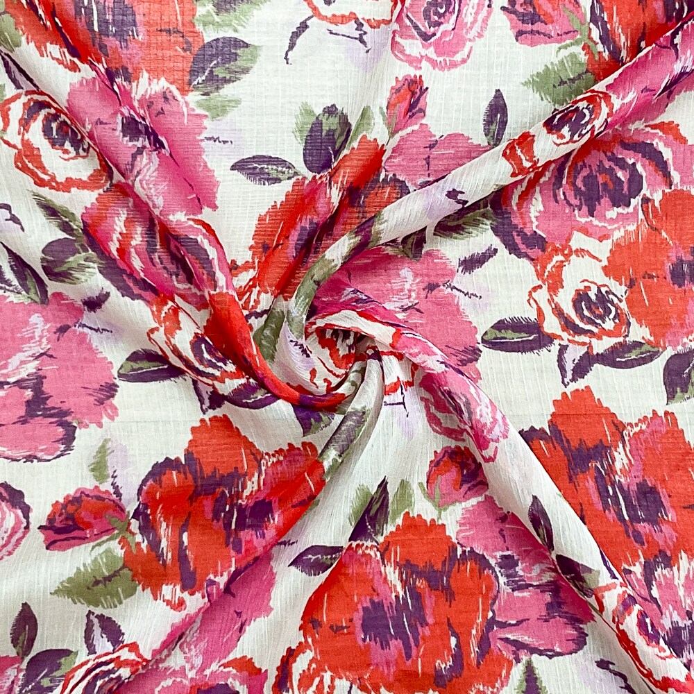 Red-Ivory-Multi Poly Floral Printed Crinkle Yoryu Chiffon Woven Fabric By the Yard