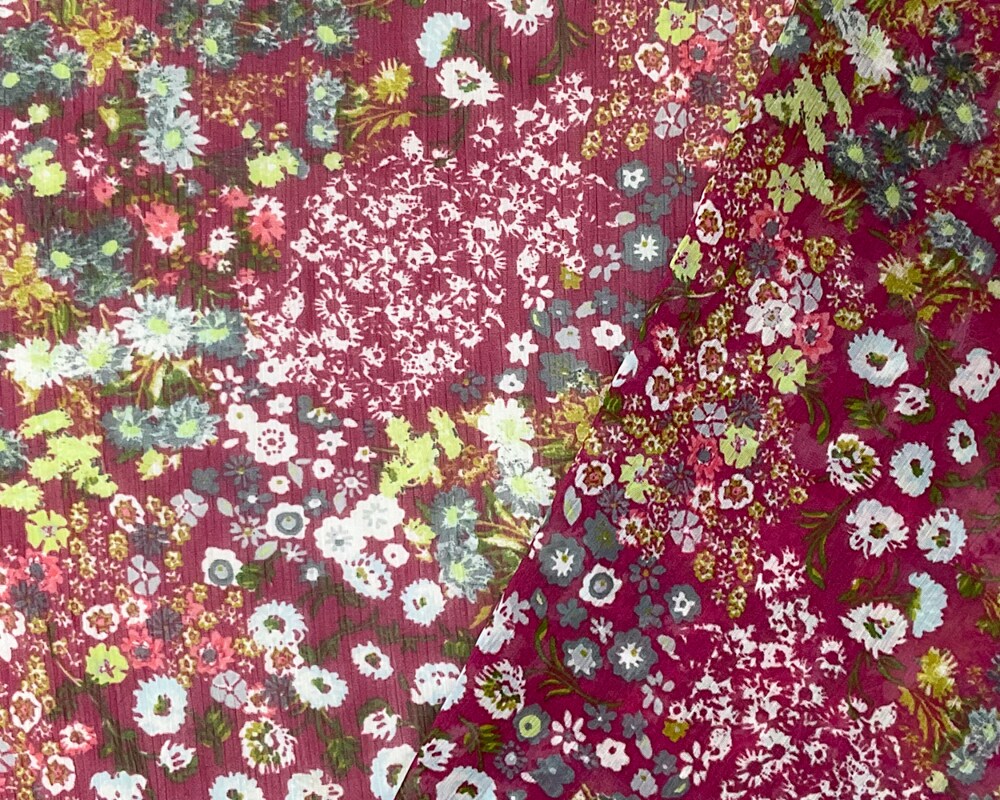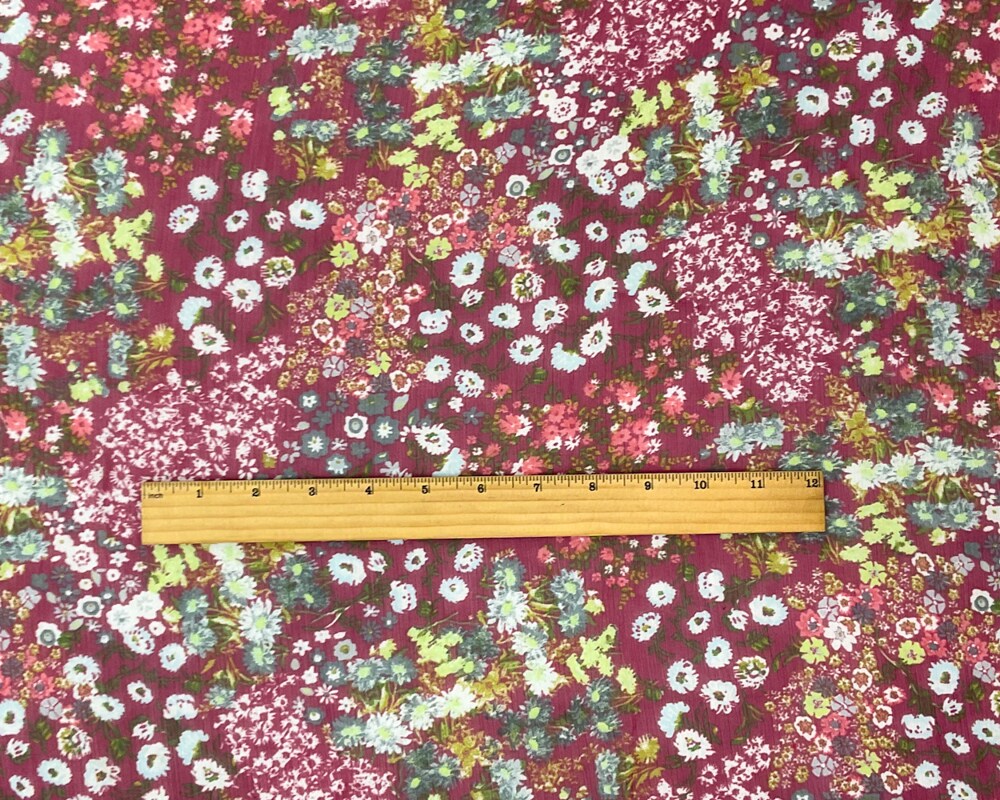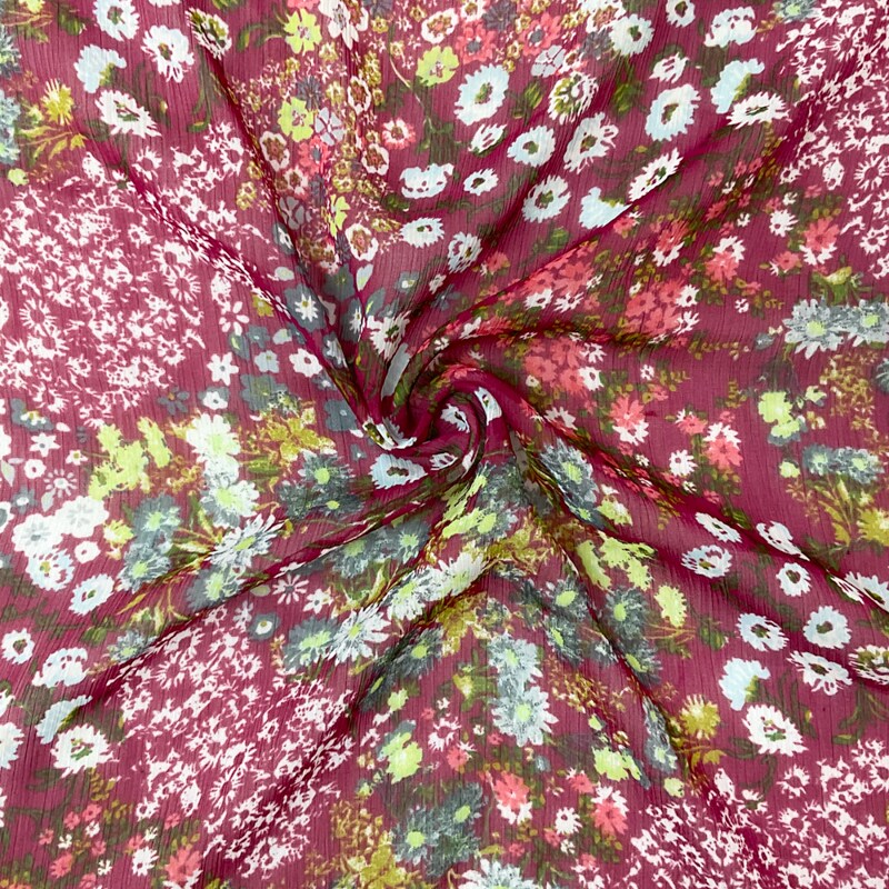 Red-Multi Poly Floral Printed Crinkle Yoryu Chiffon Woven Fabric By the Yard