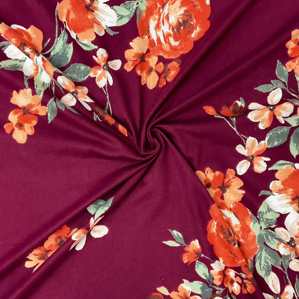 Red-Multi Poly Spandex Stretch Floral Print DB Jersey Knit Fabric By the Yard