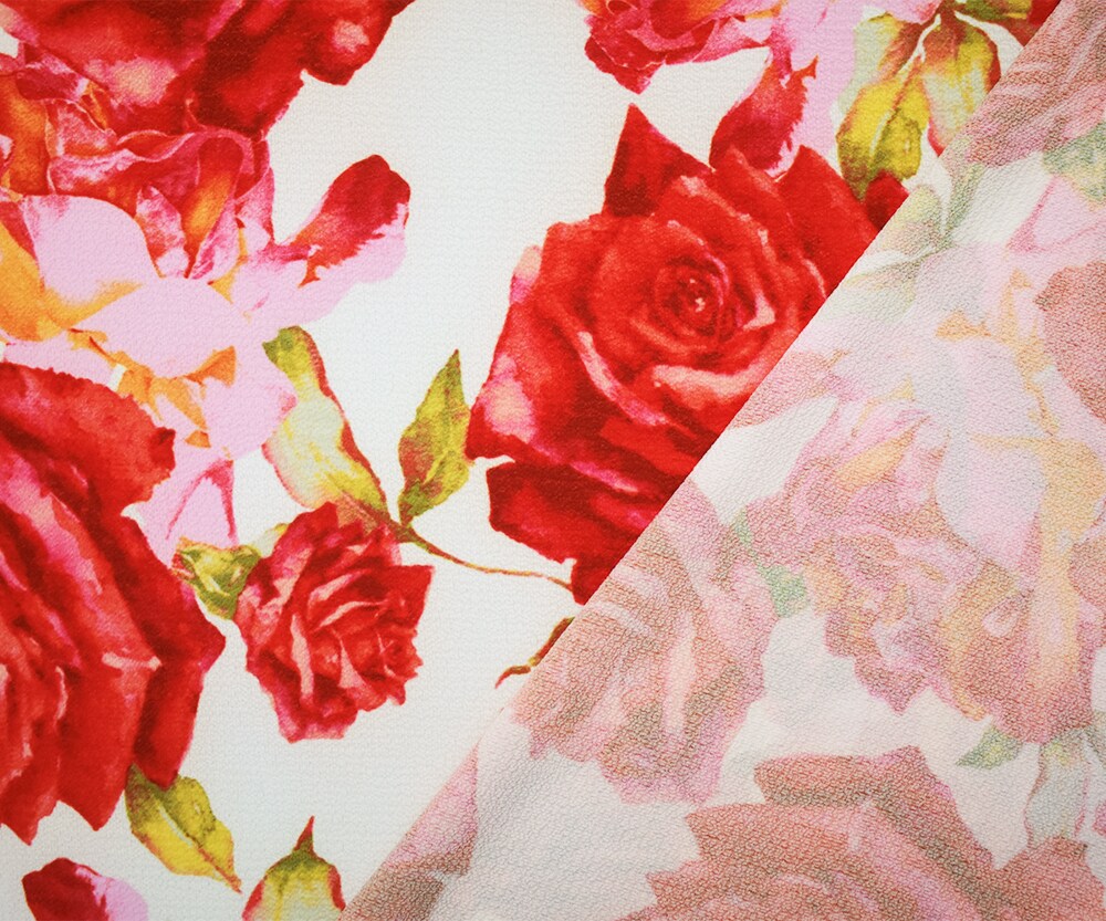 Red-Pink-Multi Poly Floral Printed Pebble Crepe Woven Fabric By the Yard