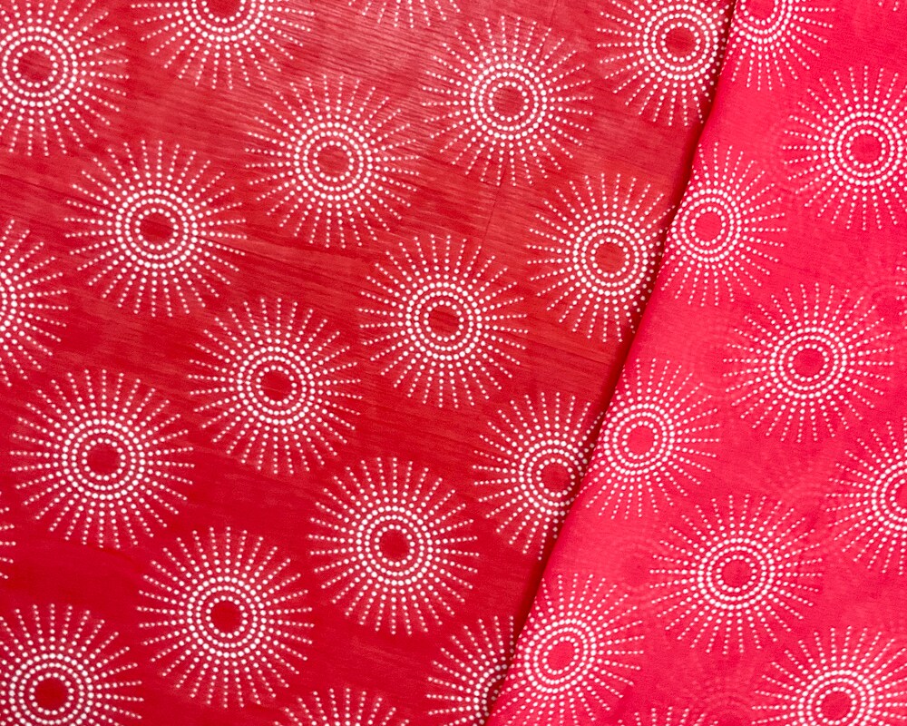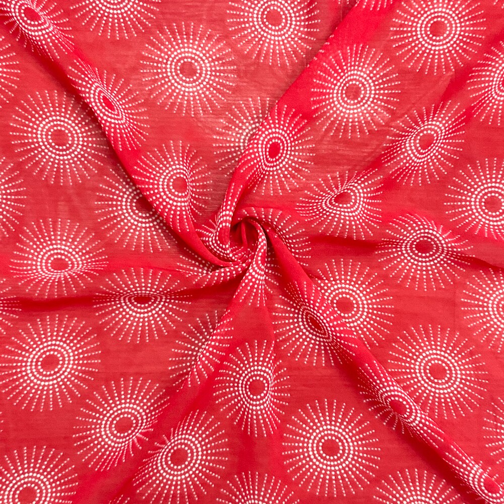 Red-White Poly Abstract Printed Chiffon Woven Fabric By the Yard
