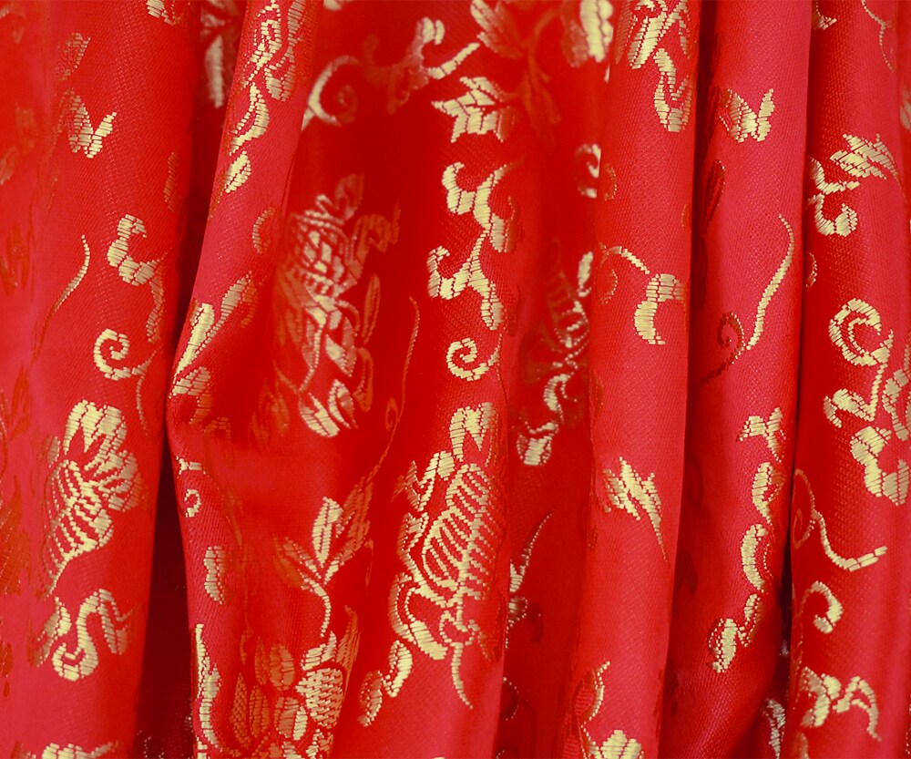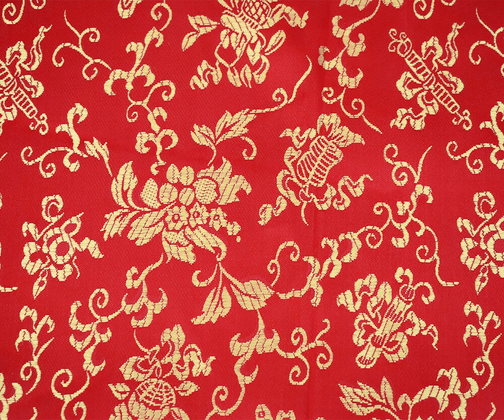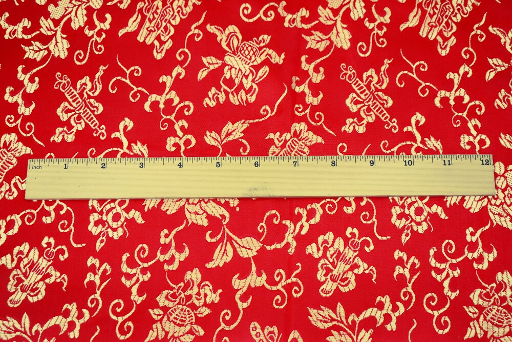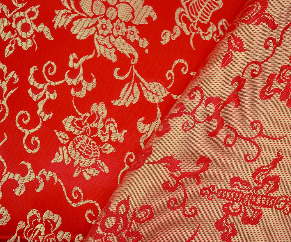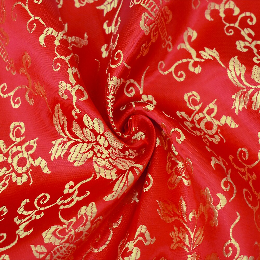 Red-Yellow Polyester Floral Pattern Chinese Brocade Woven Fabric By the Yard