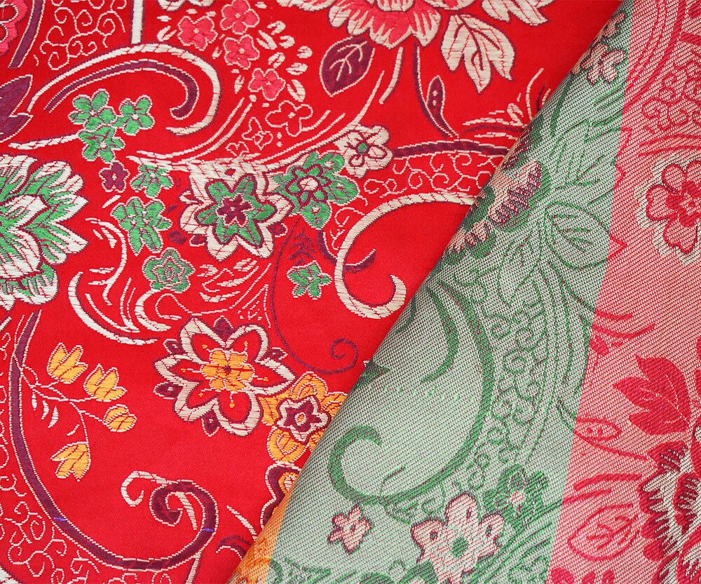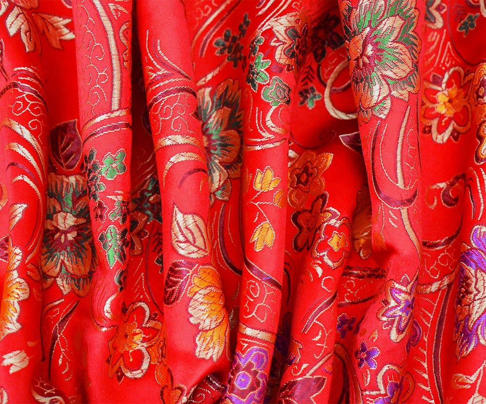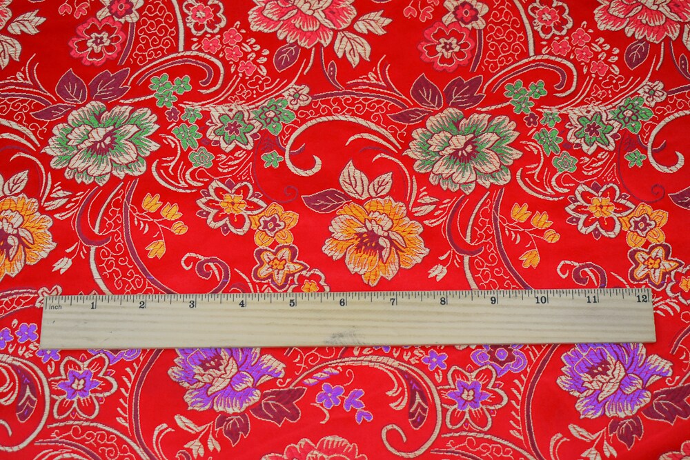 Red-Yellow-Multi Polyester Floral Chinese Brocade Woven Fabric By the Yard
