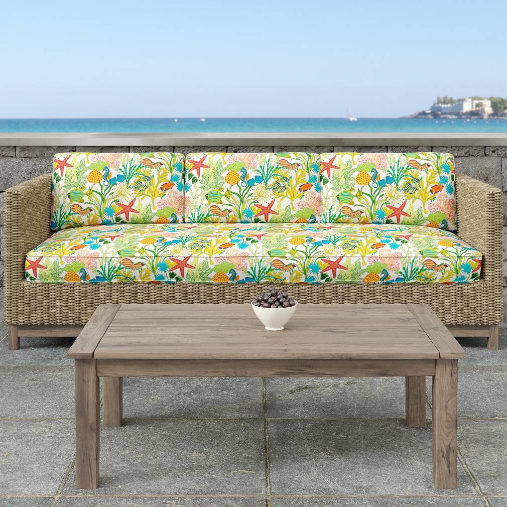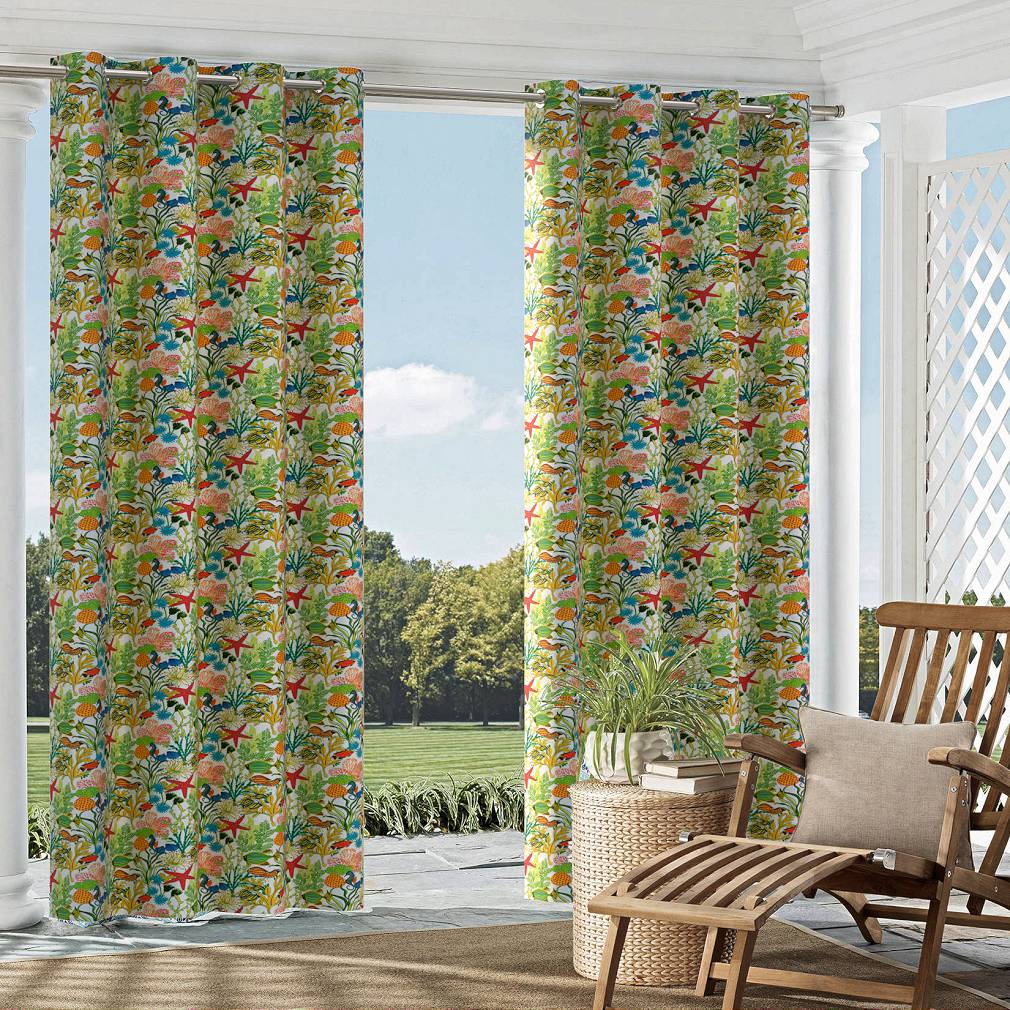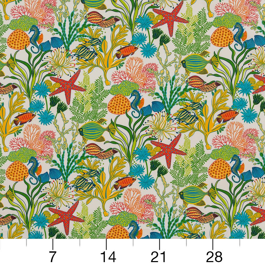 Reef - Blue,Coral & Peach Tropical & Botanical Upholstery Fabric 54 Inches"