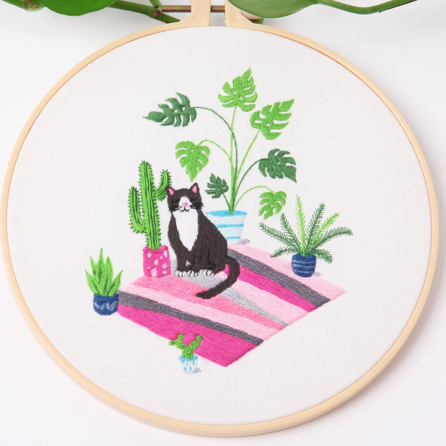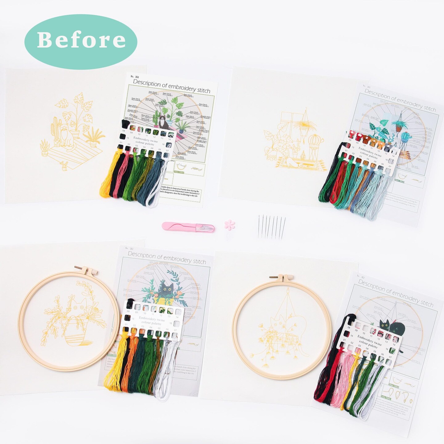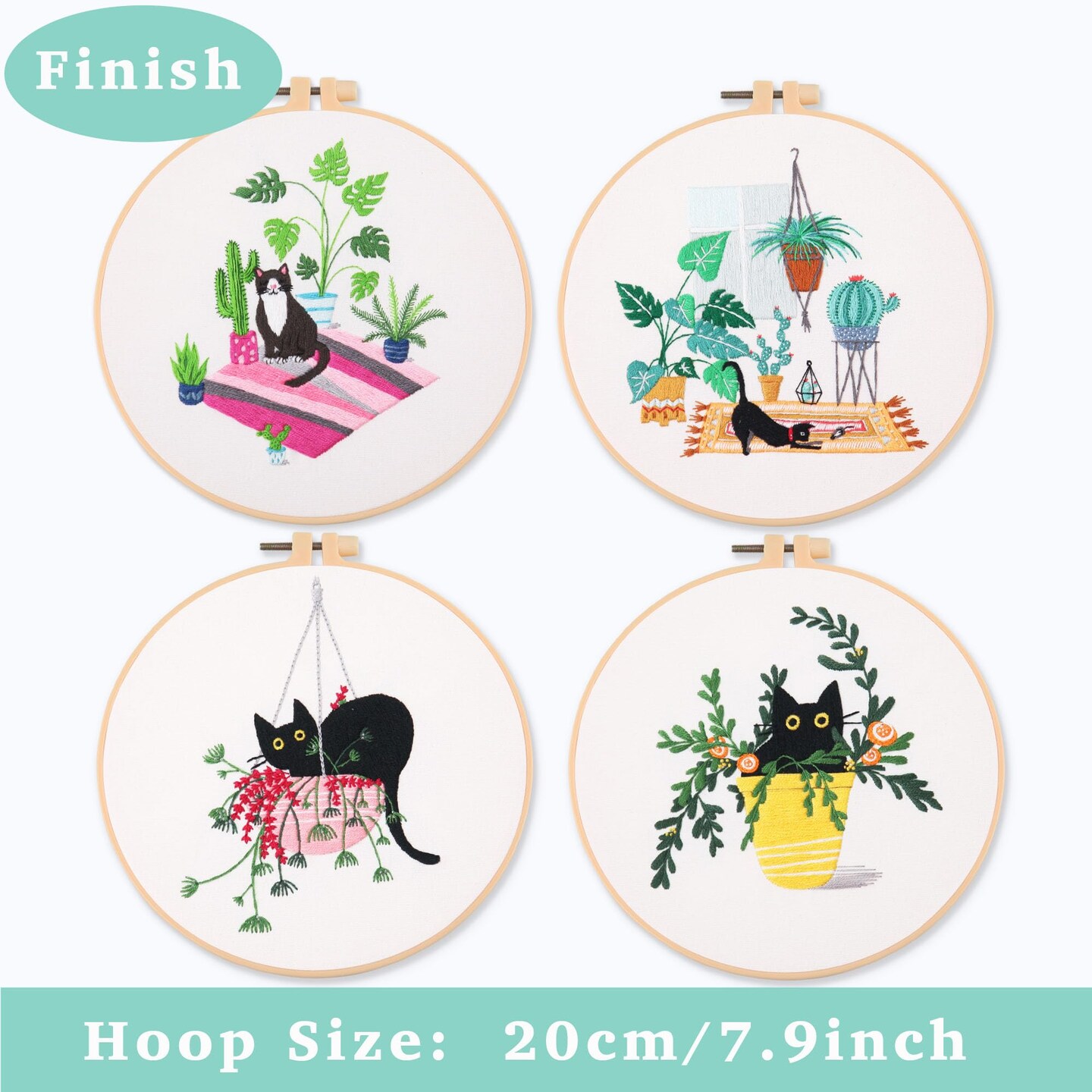 REEWISLY 4 pcs of Embroidery Starter kit with Patterns and Instructions, DIY Adult Beginner Cross Stitch Kits, Including 2 Plastic Embroidery Rings, 1 Pair of Scissors, Colored Threads and Needles