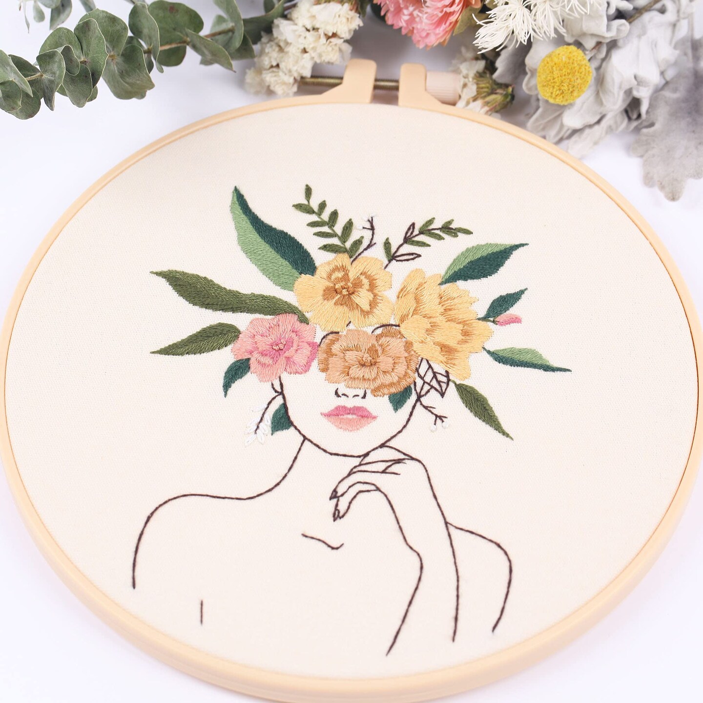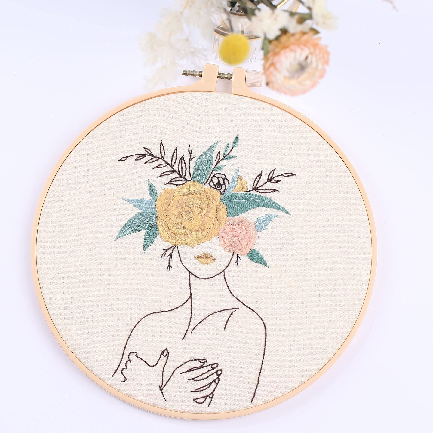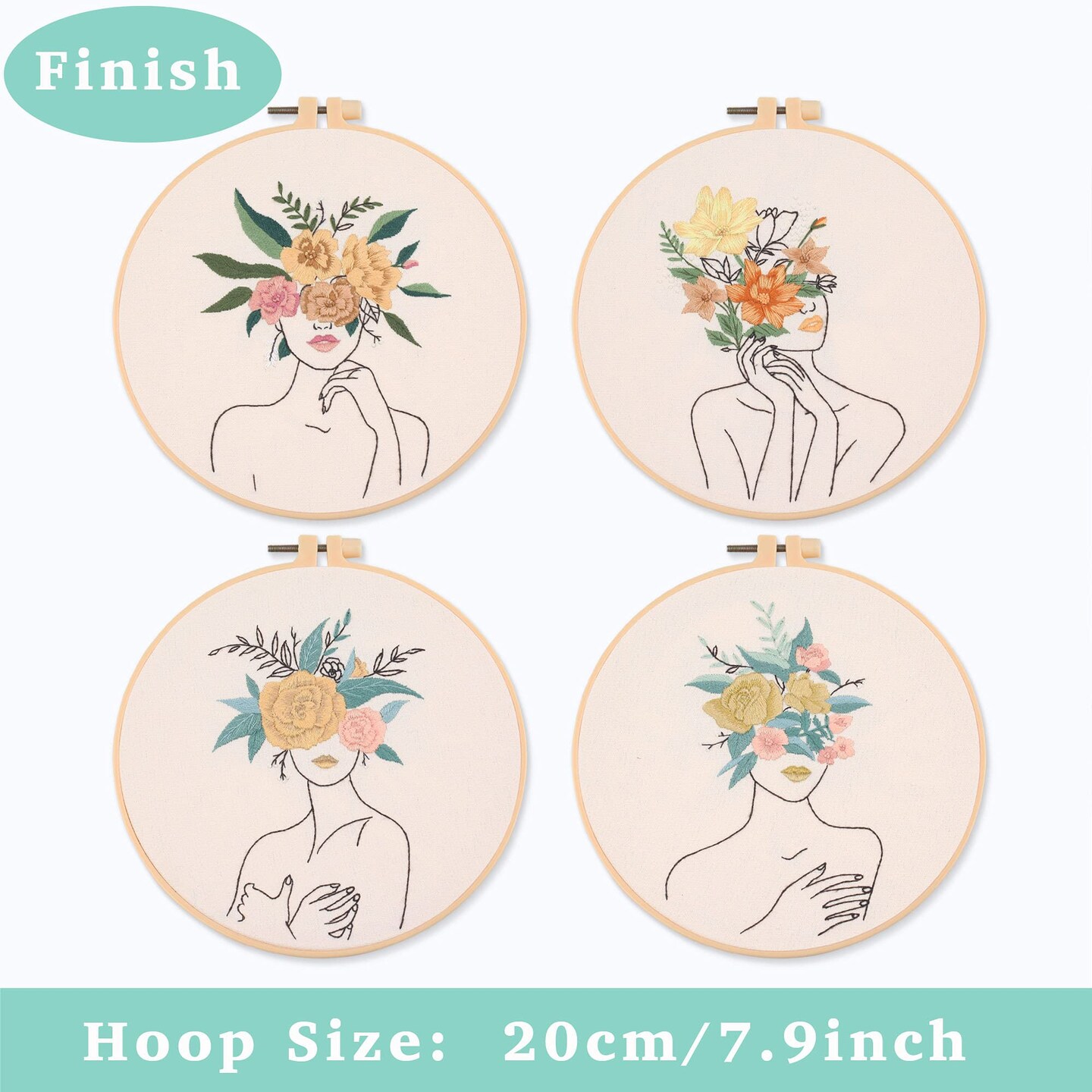 REEWISLY 4 pcs of Embroidery Starter kit with Patterns and Instructions, DIY Adult Beginner Cross Stitch Kits, Including 2 Plastic Embroidery Rings, 1 Pair of Scissors, Colored Threads and Needles