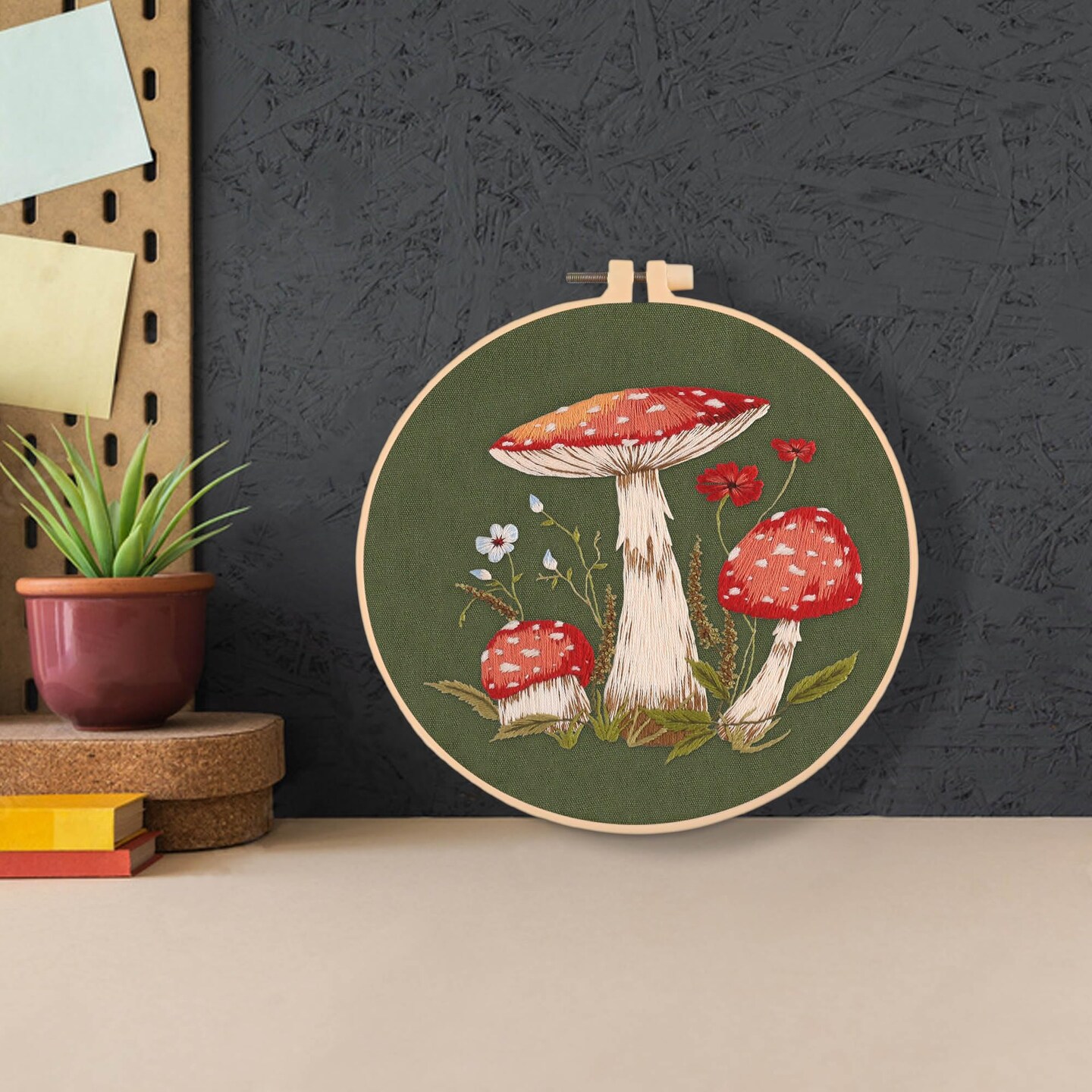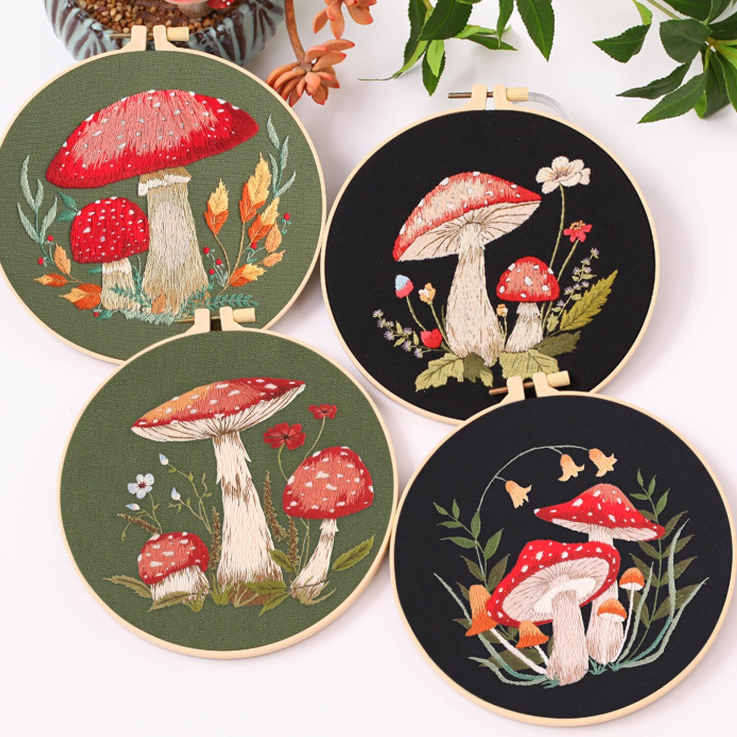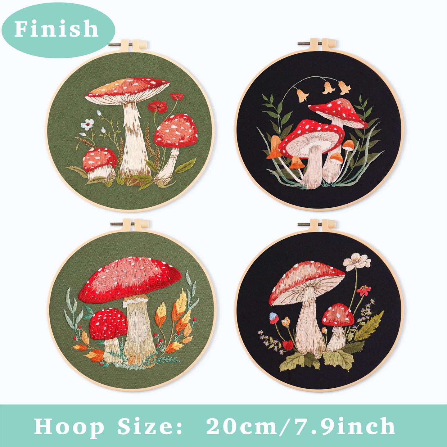 REEWISLY 4 Pcs of Embroidery Starter kit with Patterns and Instructions, DIY Adult Beginner Embroidery Kits, Including 2 Plastic Embroidery Rings, 1 Pair of Scissors, Colored Threads and Needles