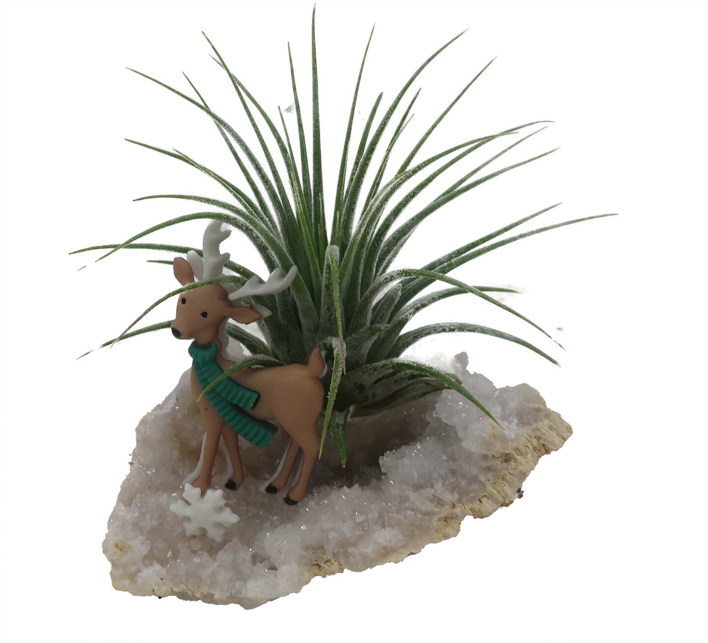 Reindeer Christmas Geode with Live Air Plant - Tillandsia