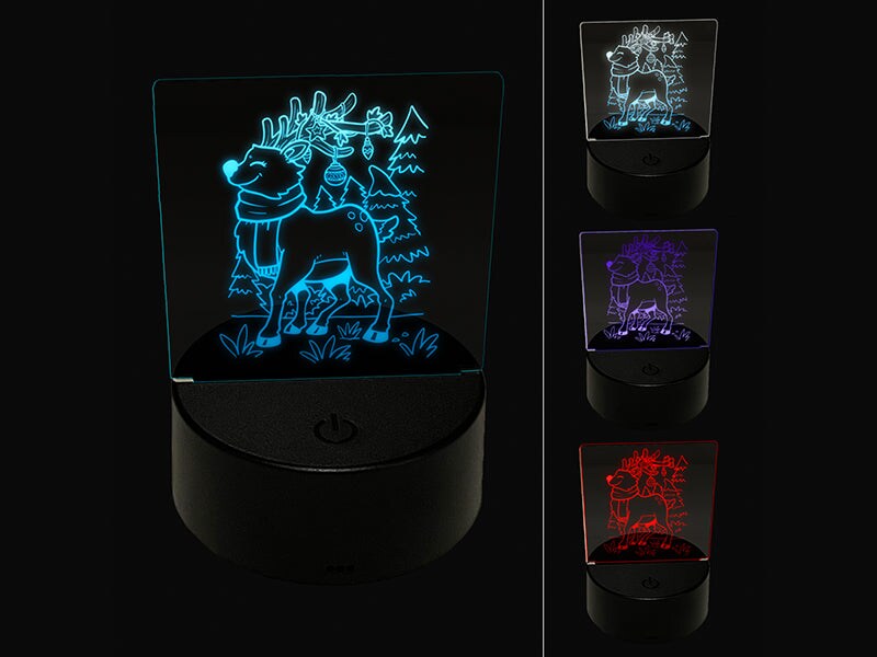 Reindeer with Christmas Ornaments 3D Illusion LED Night Light Sign Nightstand Desk Lamp