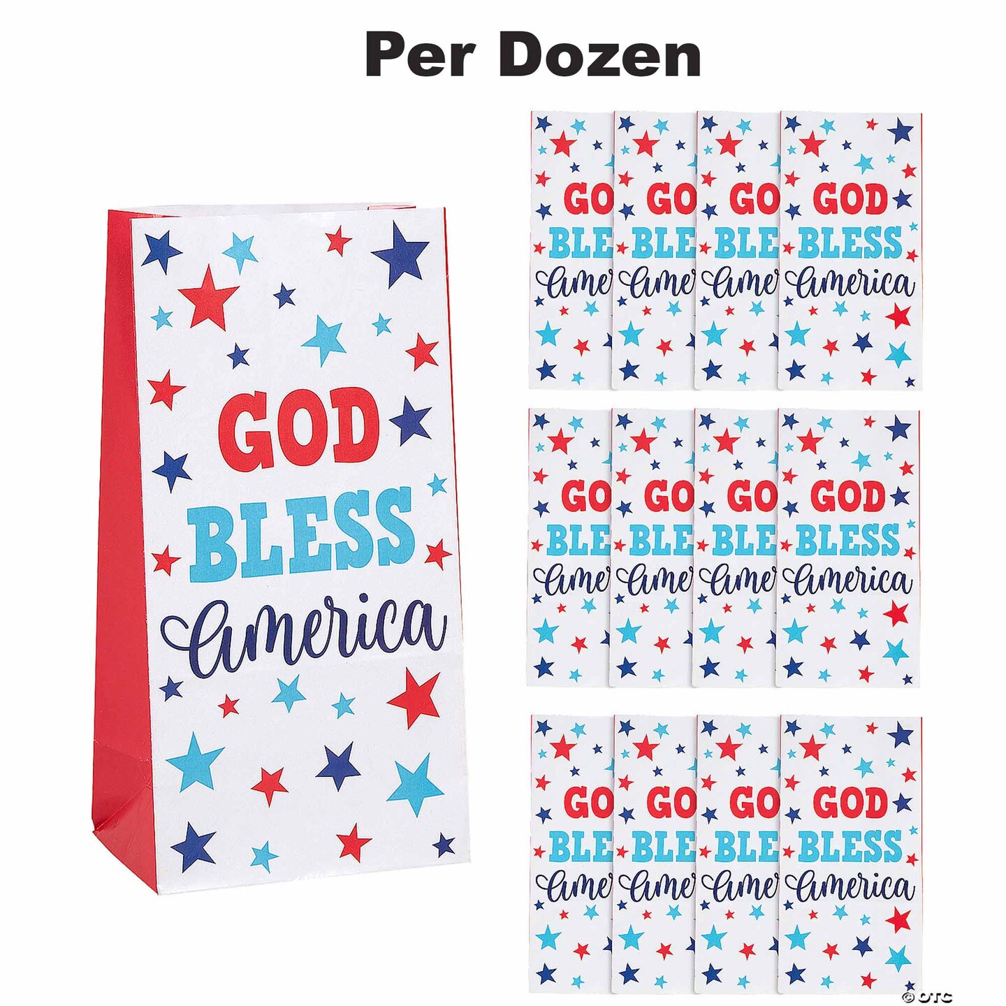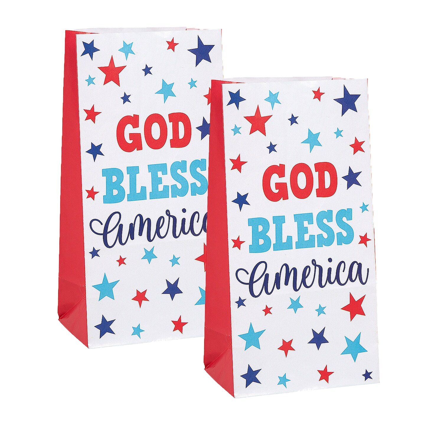 Religious Patriotic Paper Treat Bags 5 1/4" x 10" - 12 Pc
