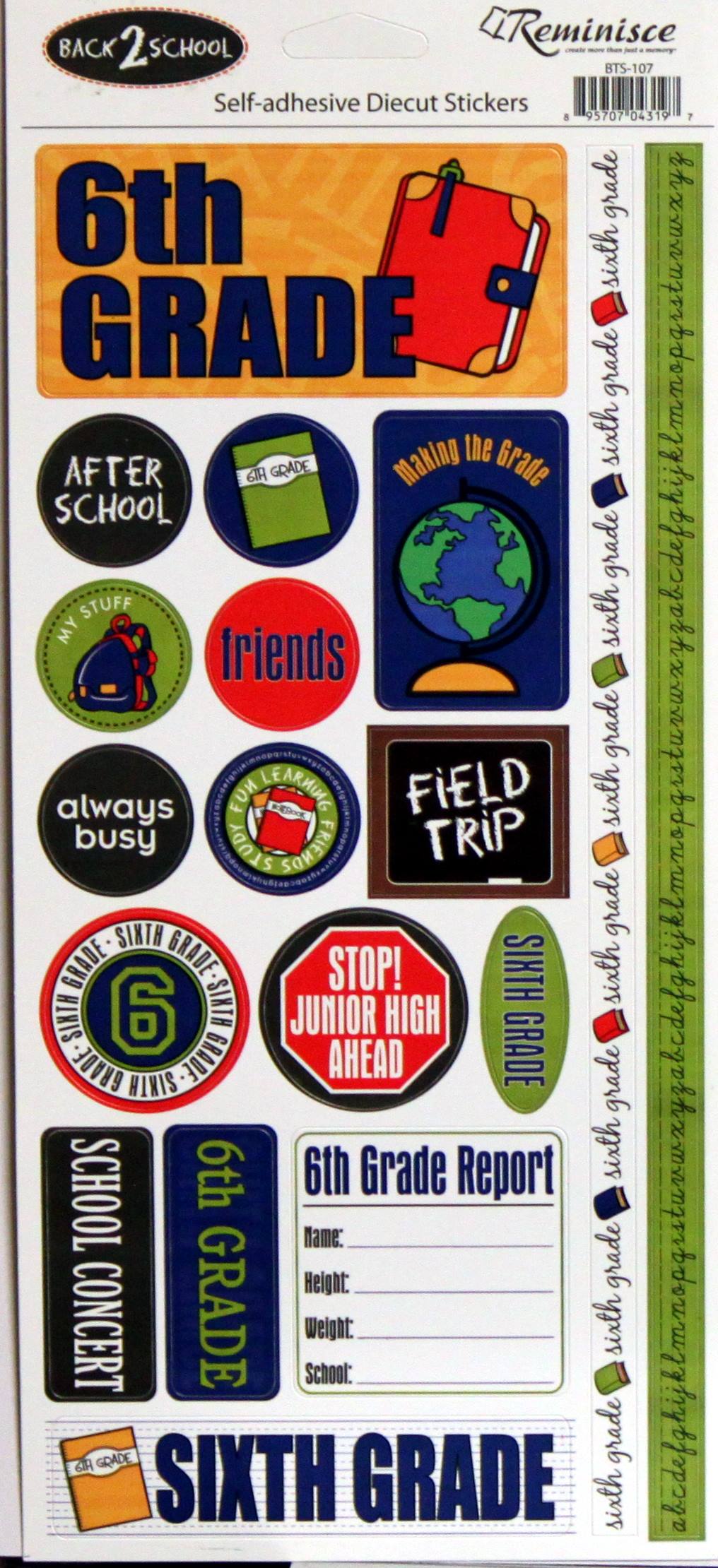 Reminisce Back 2 School 6th Grade Cardstock Stickers