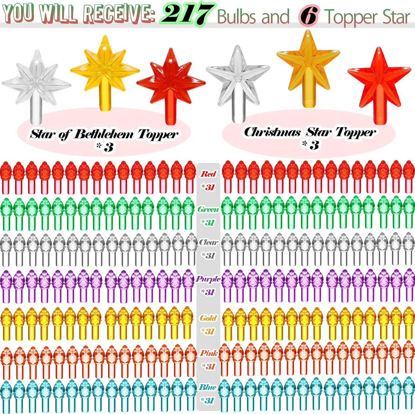Replacement Lights Bulbs for Ceramic Christmas Tree (Lucky 7 Series: Mixed Colors)