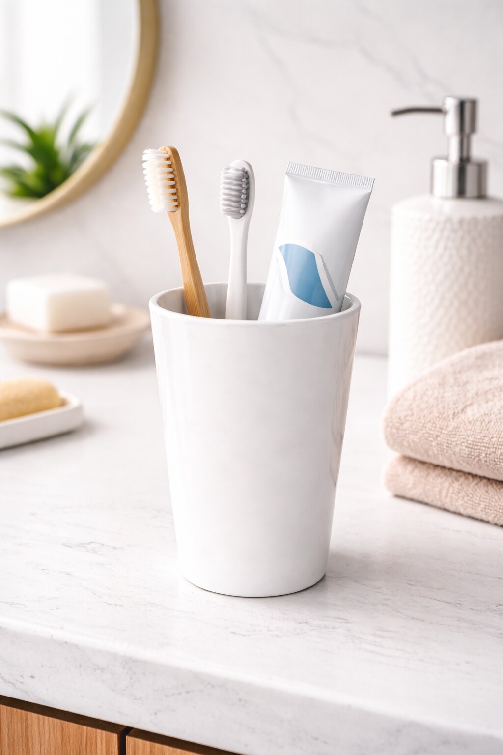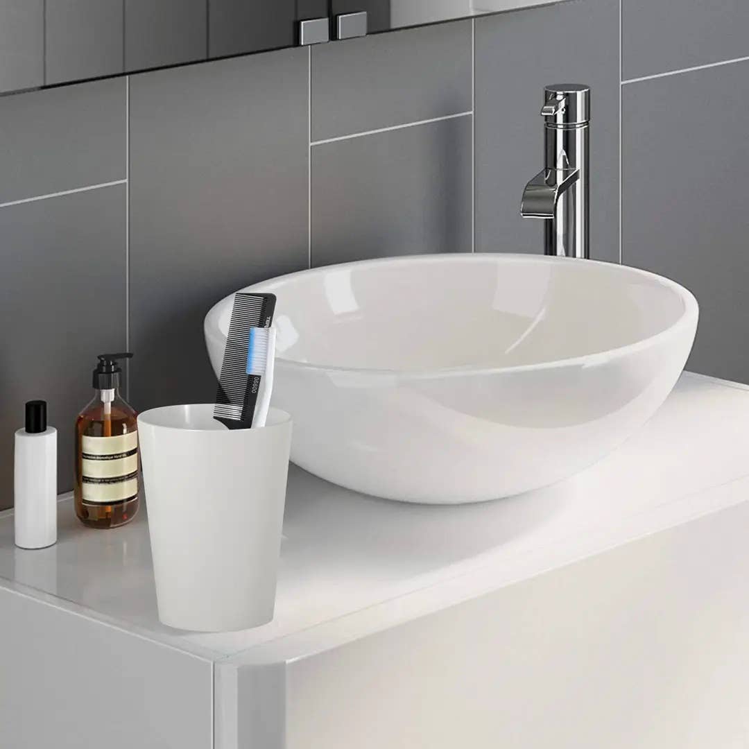 Resin Bathroom Tumbler Cup | Decorative Rinse Cup,Drinking Glass,Toothbrush & Makeup Brush Holder for Vanity Countertops,Sink & Desk | White