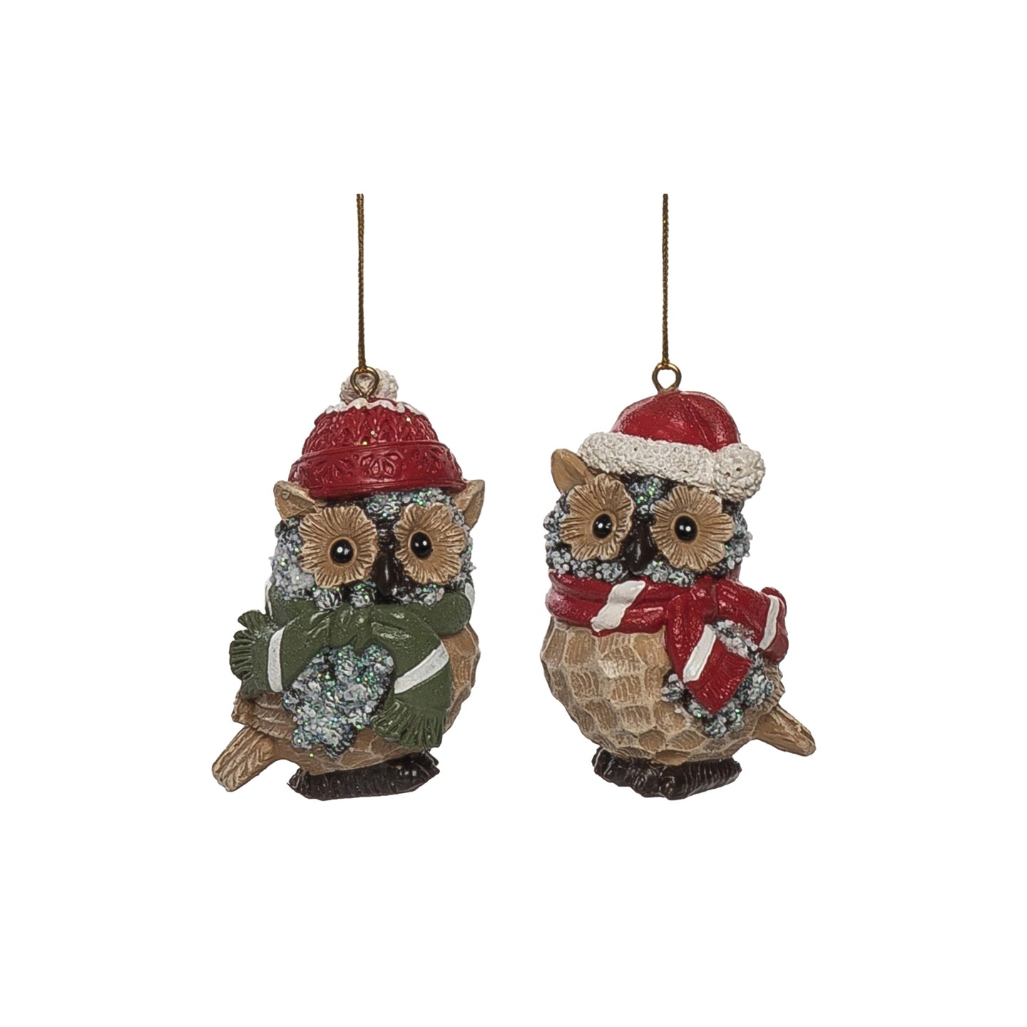 Resin Bundled Up Owl Ornament Set of Two Christmas Decor