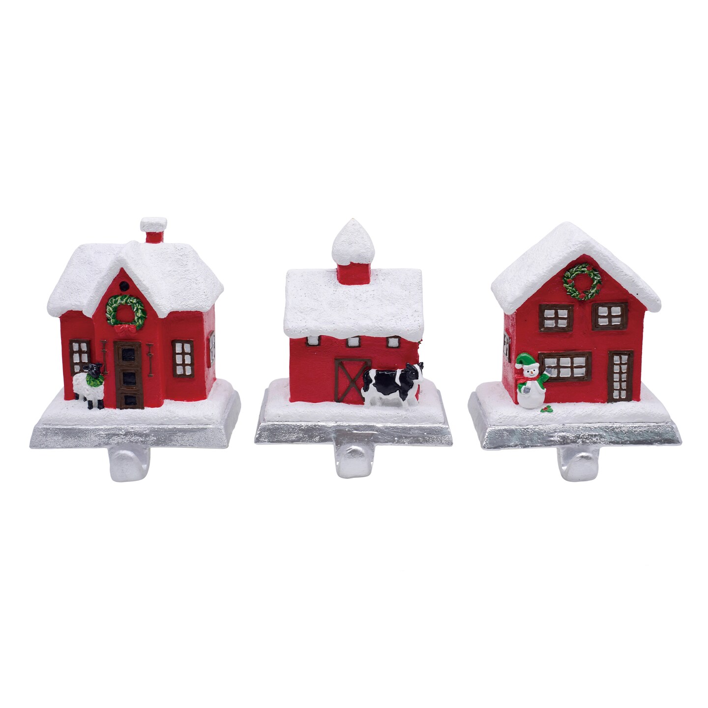 Resin Holiday Barn Stocking Hanger Set of 3 Multicolor Decor