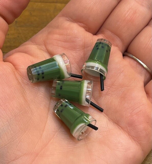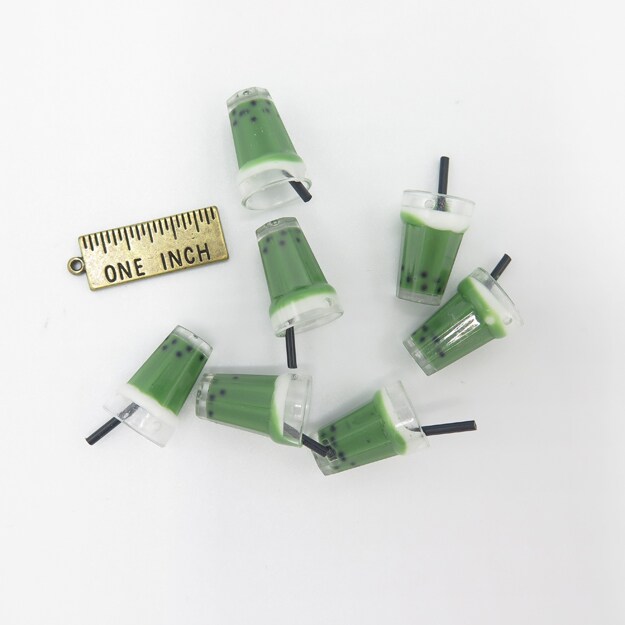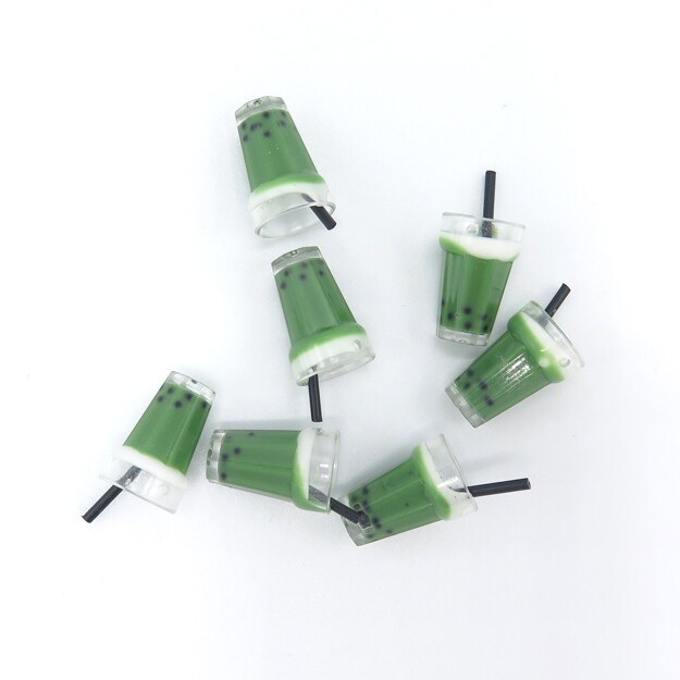 Resin & Plastic Green Tea Boba Charms (K368) (2x)