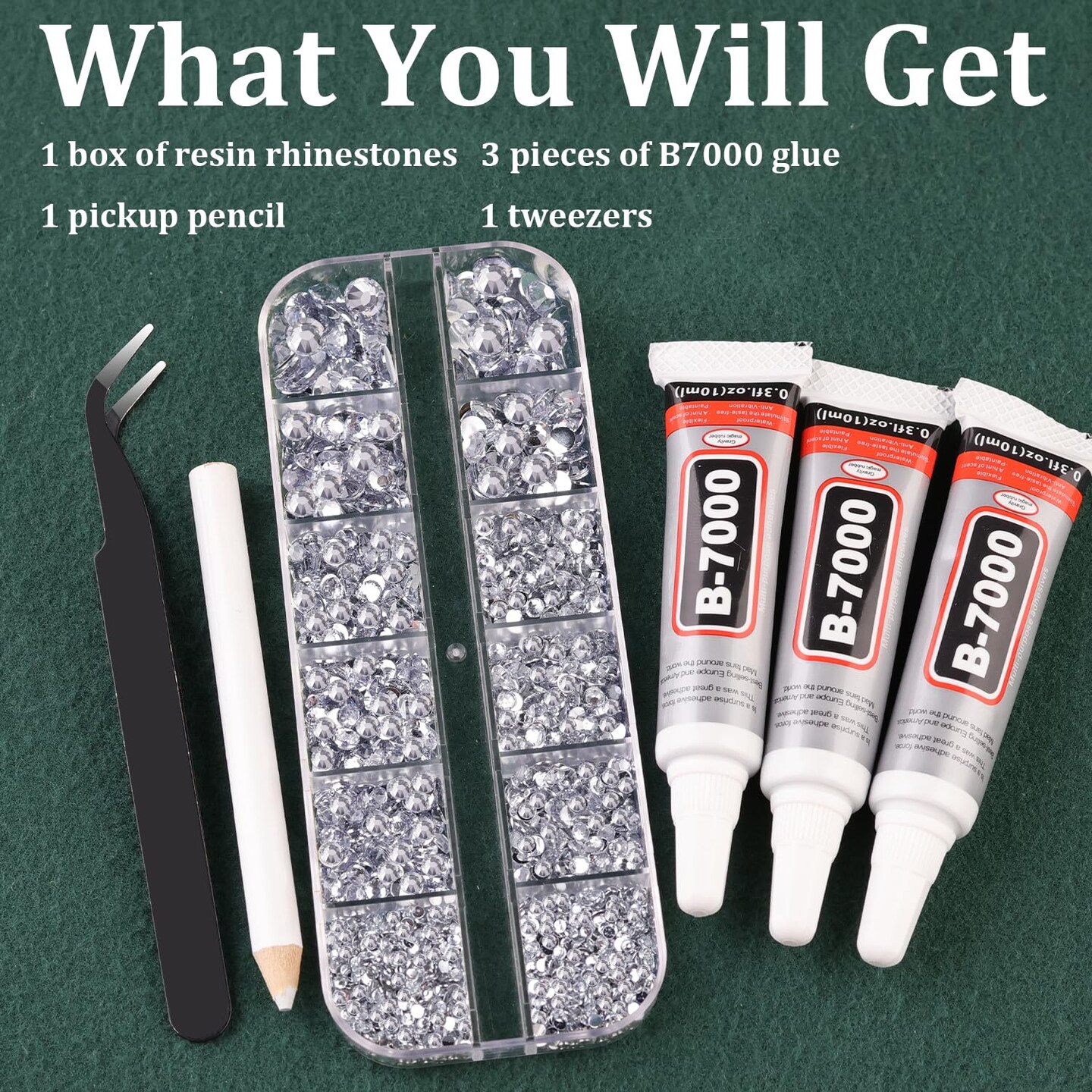 Resin Rhinestones for Crafting with Jewelry Glue, 1 Box Clear Flatback Crystals with 3Pcs 10ml Glue for Bedazzling Crafts DIY Nail Art Makeup,Non Hotfix Gems for Clothing Shoes
