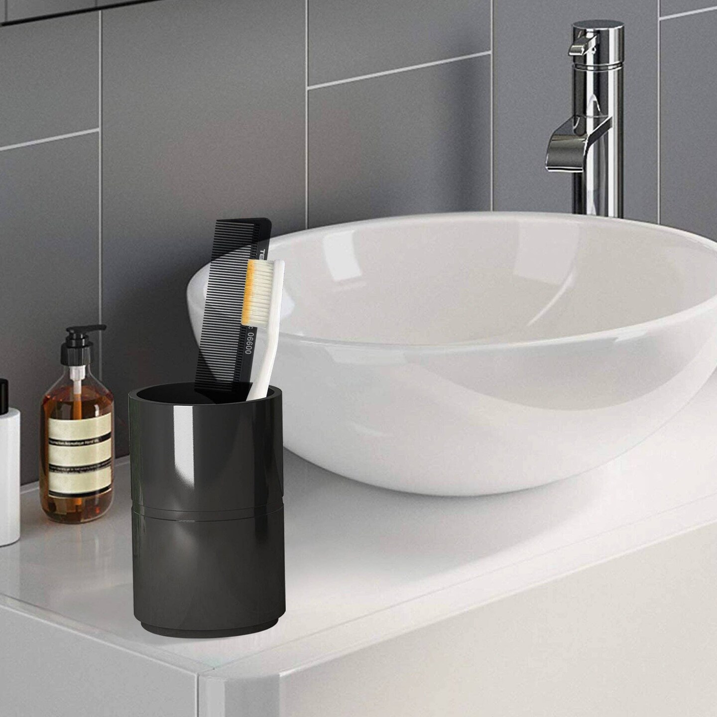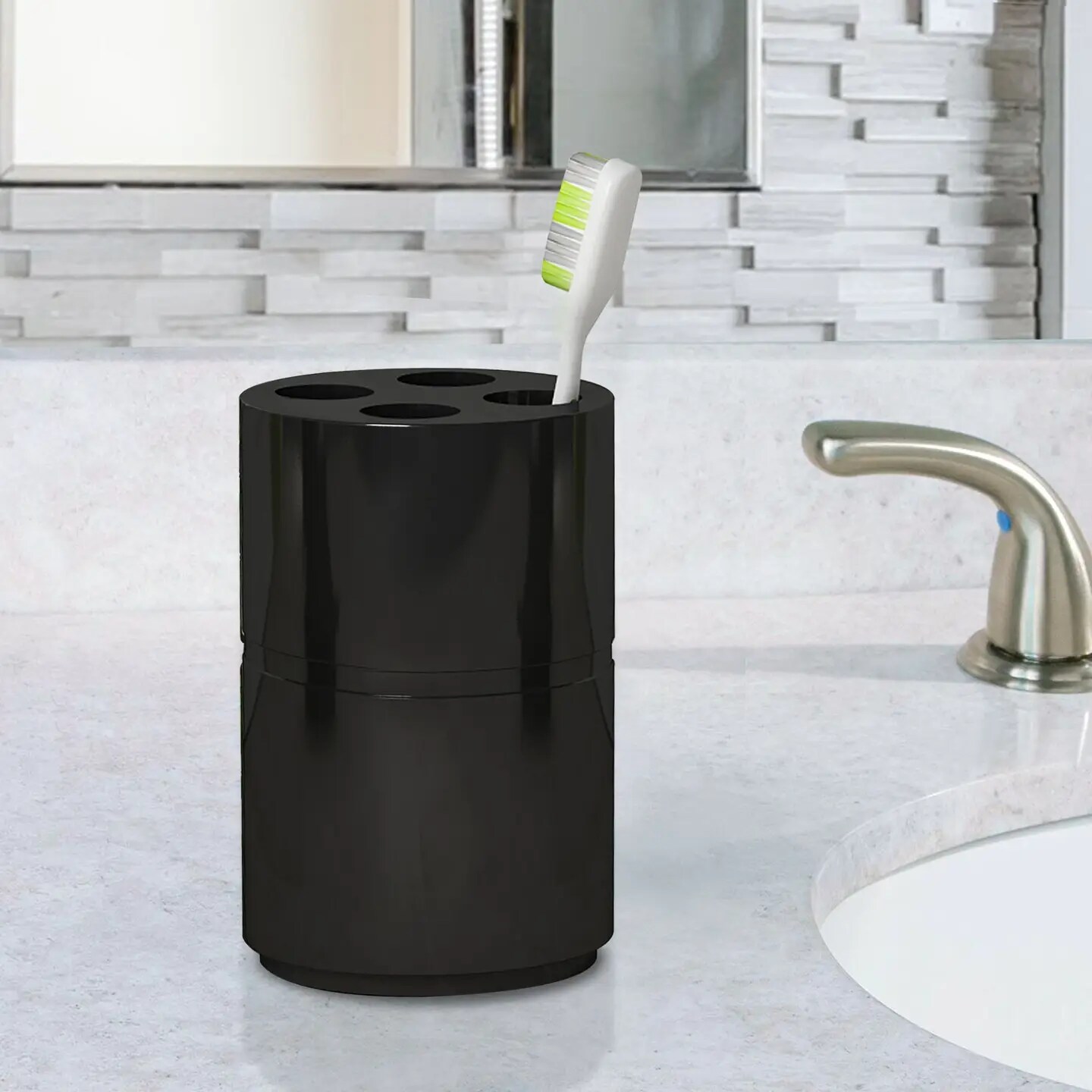Resin Toothbrush Holder | Compact Multi-Slot Holder for Toothbrushes,Razors & Makeup Accessories | Black