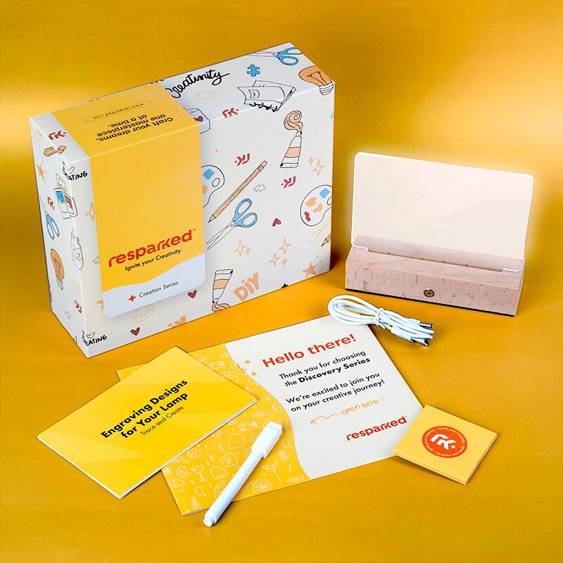 Resparked Creation Series Acrylic Lamp Crafting Kit – Personalized Engraving, Rechargeable Base, Step-by-Step Instructions, Stencils, and Practice Material for Home Décor or Gift-Giving